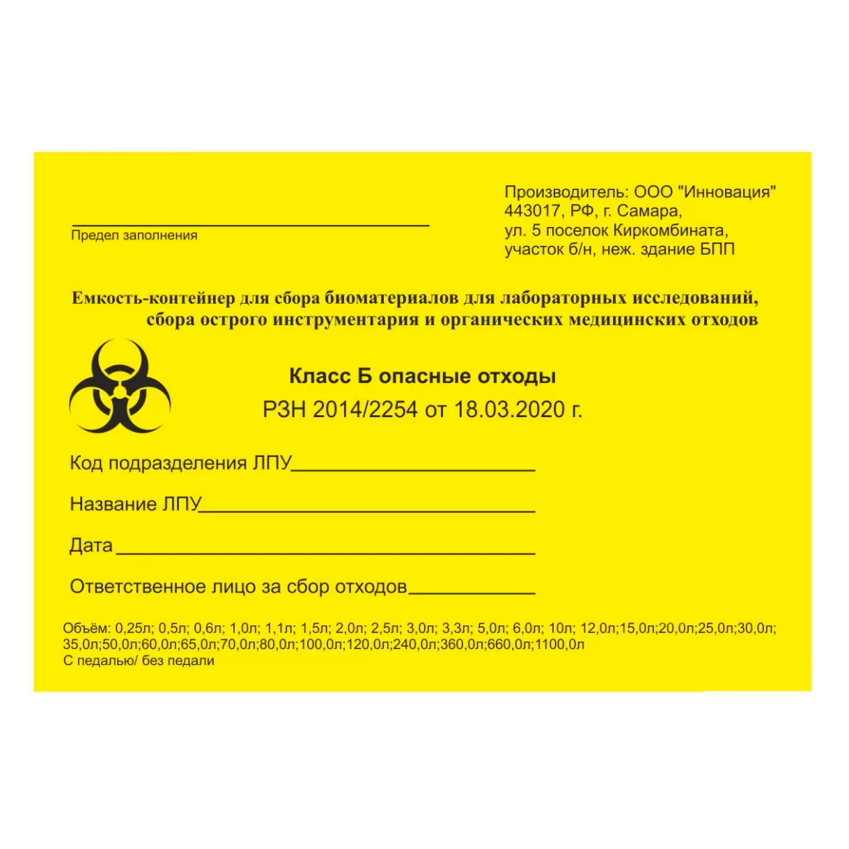 - для сбора игл для отходов класса Б (опасные отходы).