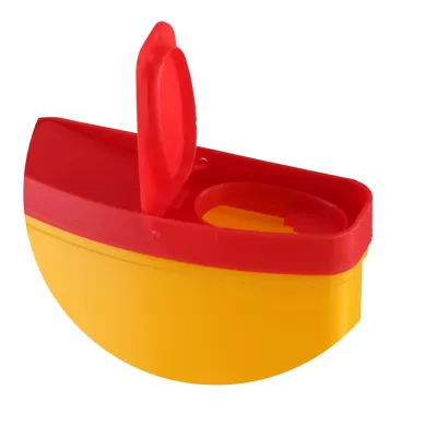 МК-01-контейнер для сбора, хранения, транспортирования и утилизации колюще-режущих отходов, одноразовый (жёлтый), 0,25 л, с полуавтоматической крышкой.
