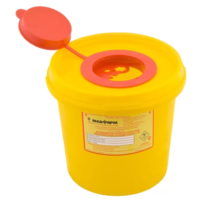 Одноразовая медицинская емкость-контейнер для бесконтактного сбора, временного хранения и удаления острых колющих и режущих медицинских отходов, в том числе игл от шприцев типа Луер, карпульных игл, игл от систем Луер-Лок, игл от вакутайнеров.