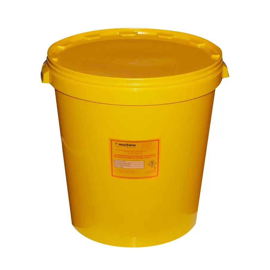 Многоразовая медицинская емкость-контейнер для сбора и временного хранения, а также удаления медицинских отходов.