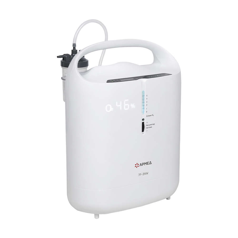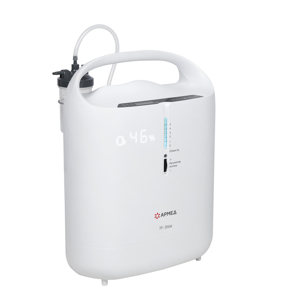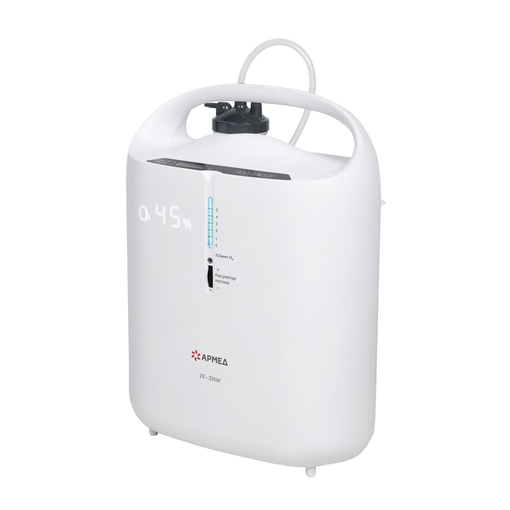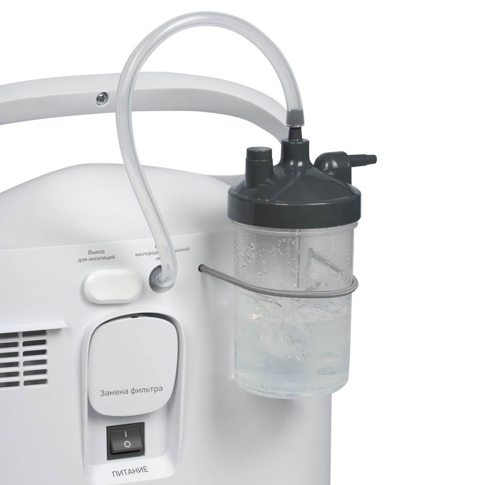 Переносной концентратор кислорода с продуманной конструкцией и оригинальным внешним видом. Достаточно мощная, но простая в использовании модель с выходом для ингаляций и информативной подсветкой данных о текущей концентрации кислородно-воздушной смеси на выходе. Подходит для использования дома, в небольших медицинских учреждениях и оздоровительных центрах.