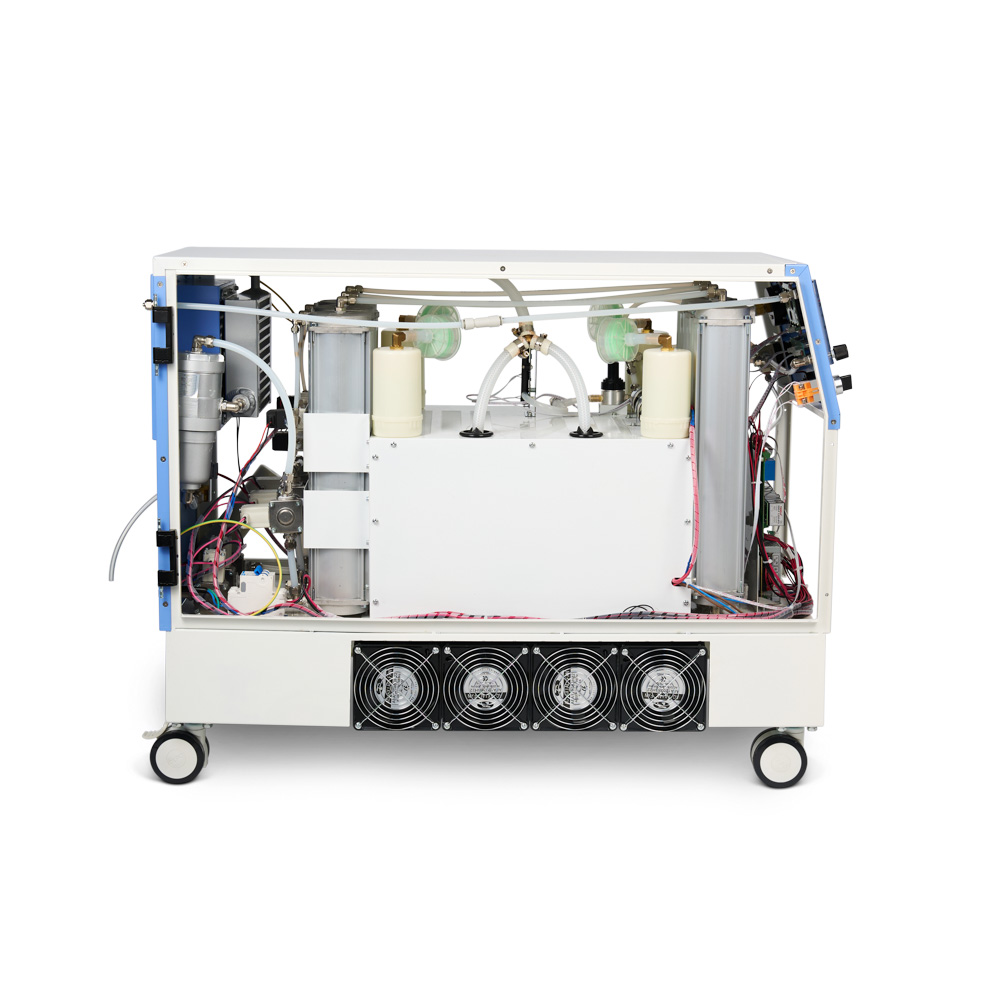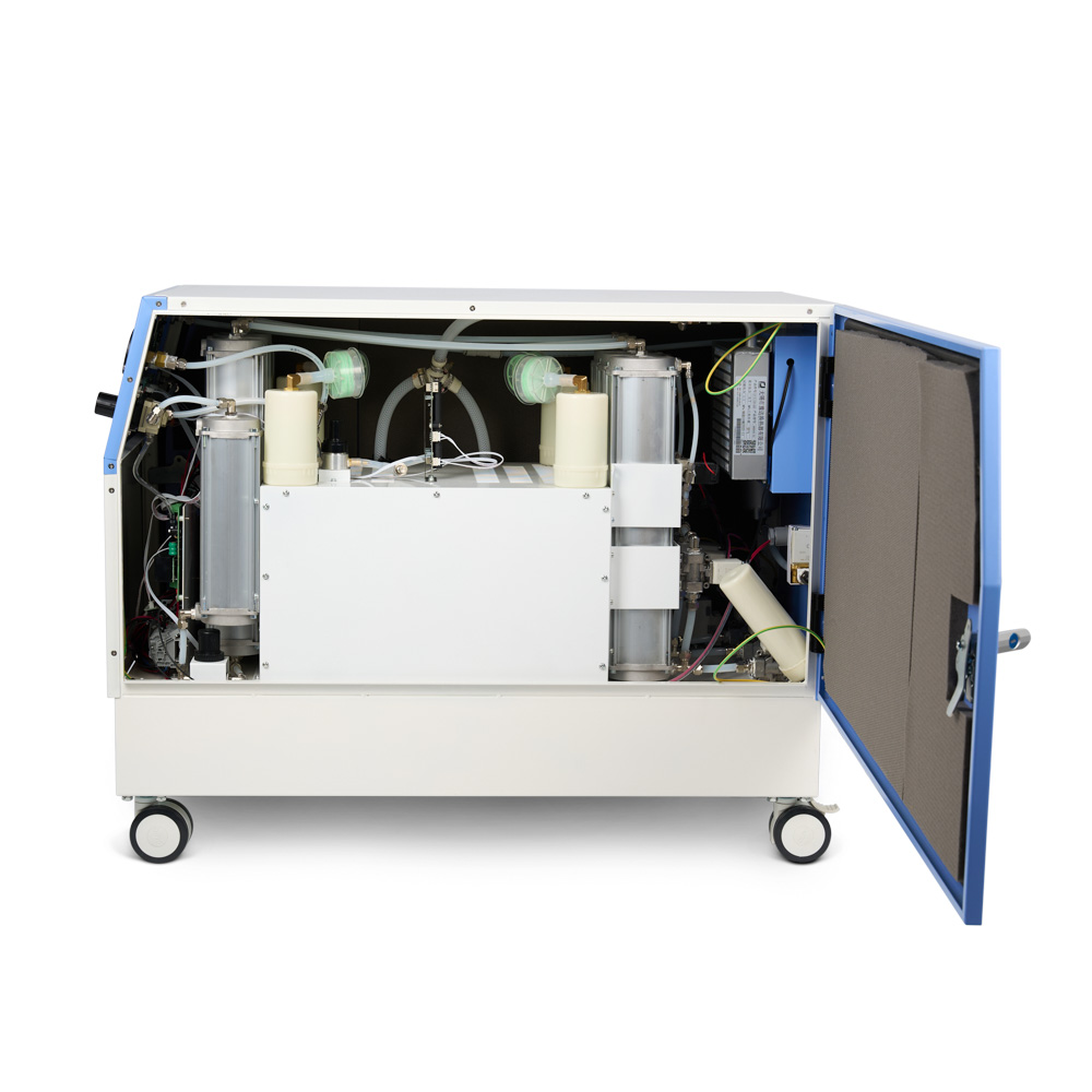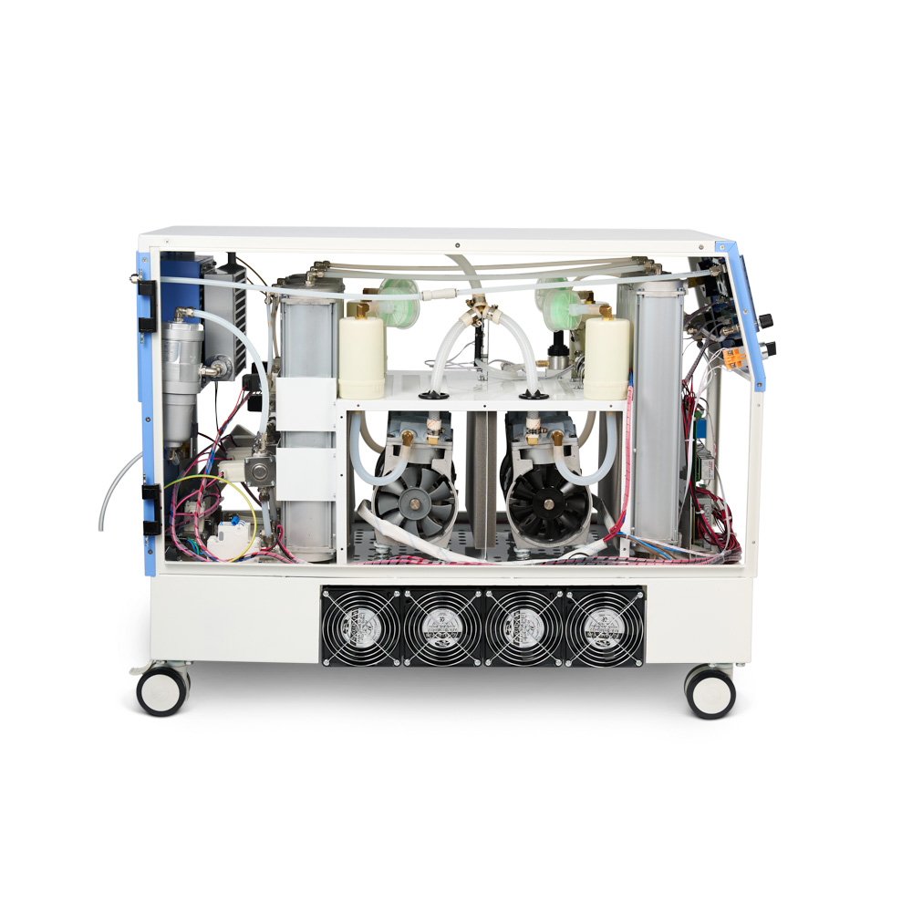 Высокая производительность. Непрерывная работа. Возможность подключения к наркозным аппаратам и ИВЛ; Самодиагностика