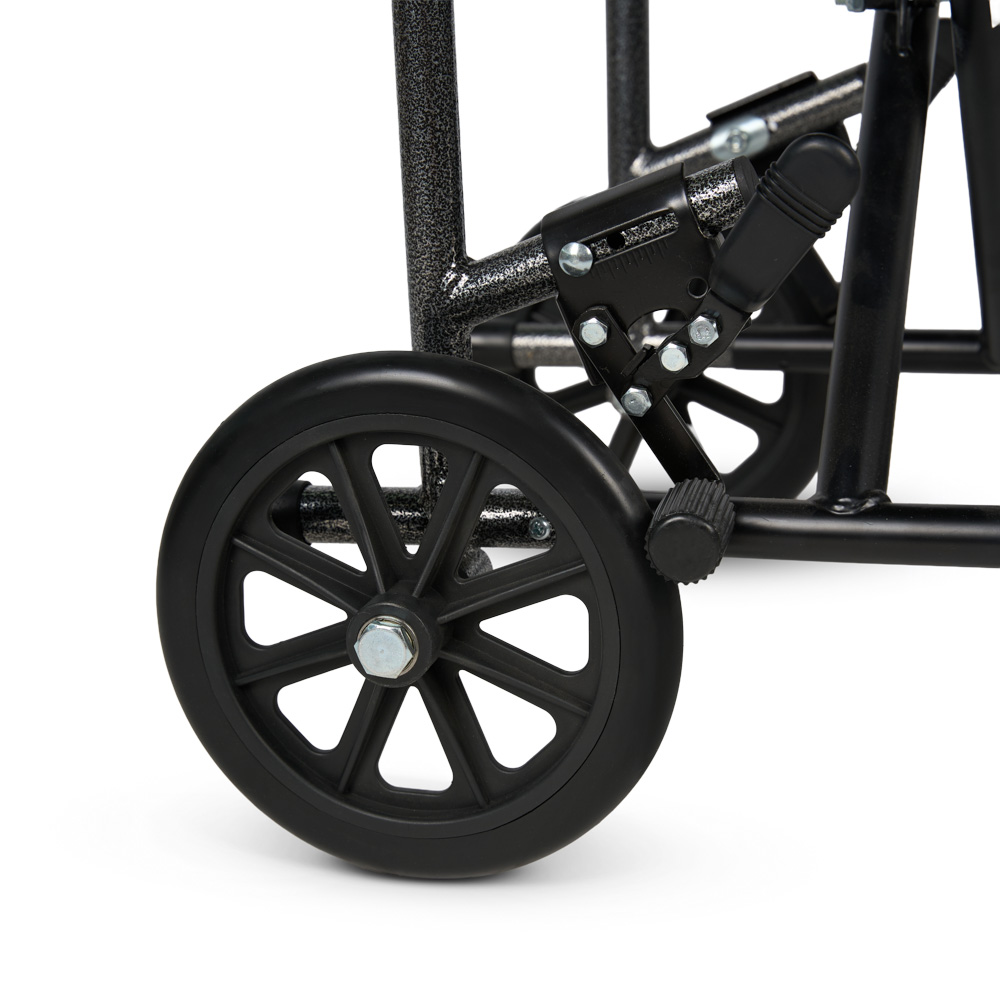 Простая бюджетная модель для использования в помещении и коротких прогулок по ровным дорогам с помощью сопровождающего. Кресло-каталка с регулируемыми подножками, литыми колёсами и стояночными тормозами, обеспечивающая комфорт при использовании дома, на даче или в медучреждении.