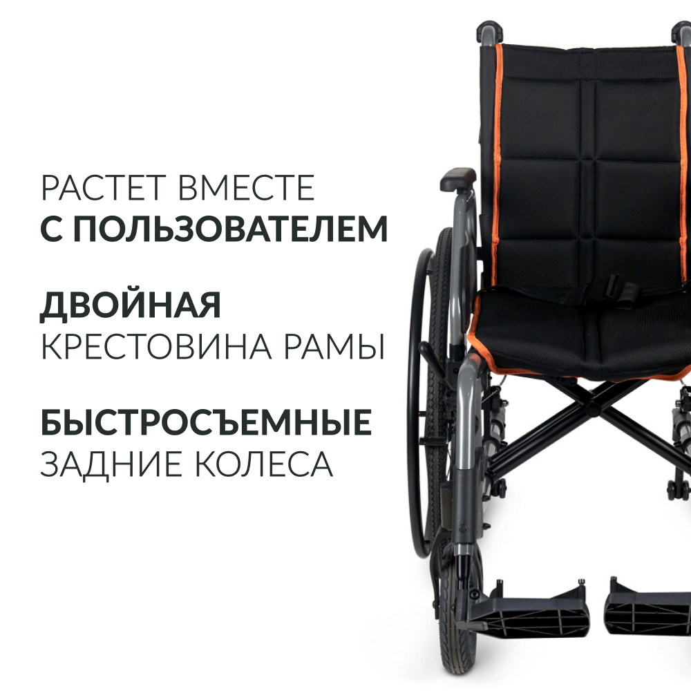Множество регулировок; Большой размерный ряд; Быстросъёмные задние колёса