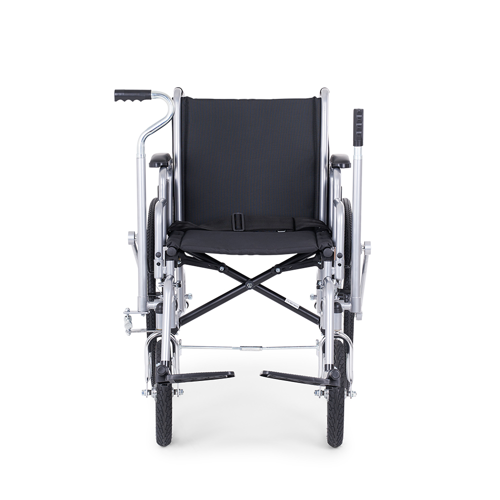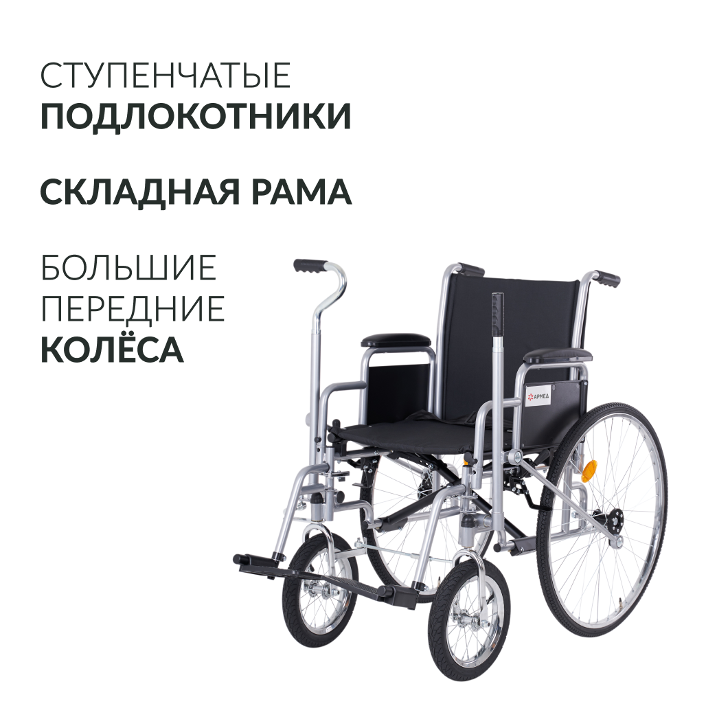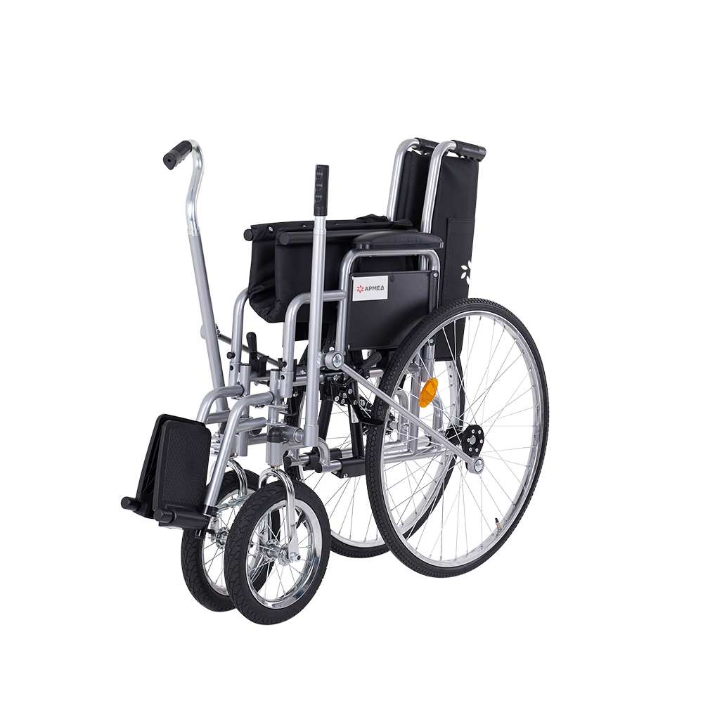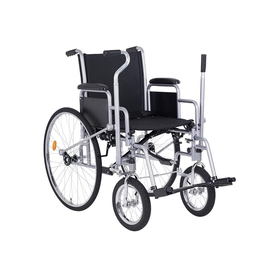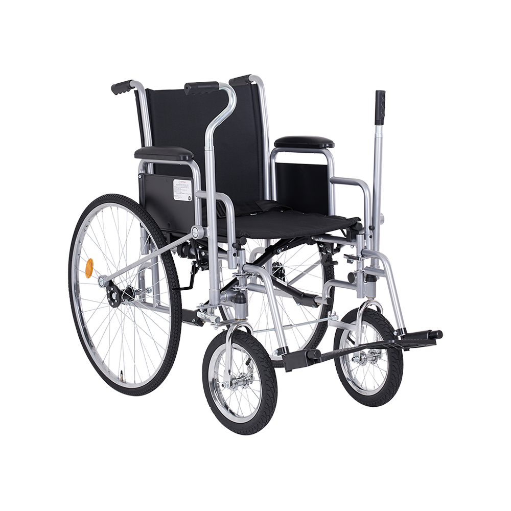 Кресло-коляска с возможностью управления как сопровождающим, так и самим пользователем. Рычажное управление коляски предназначено для правшей. Удобная в использовании и транспортировке модель с лёгкой складной рамой, пневматическими колёсами и съёмными ступенчатыми подлокотниками.