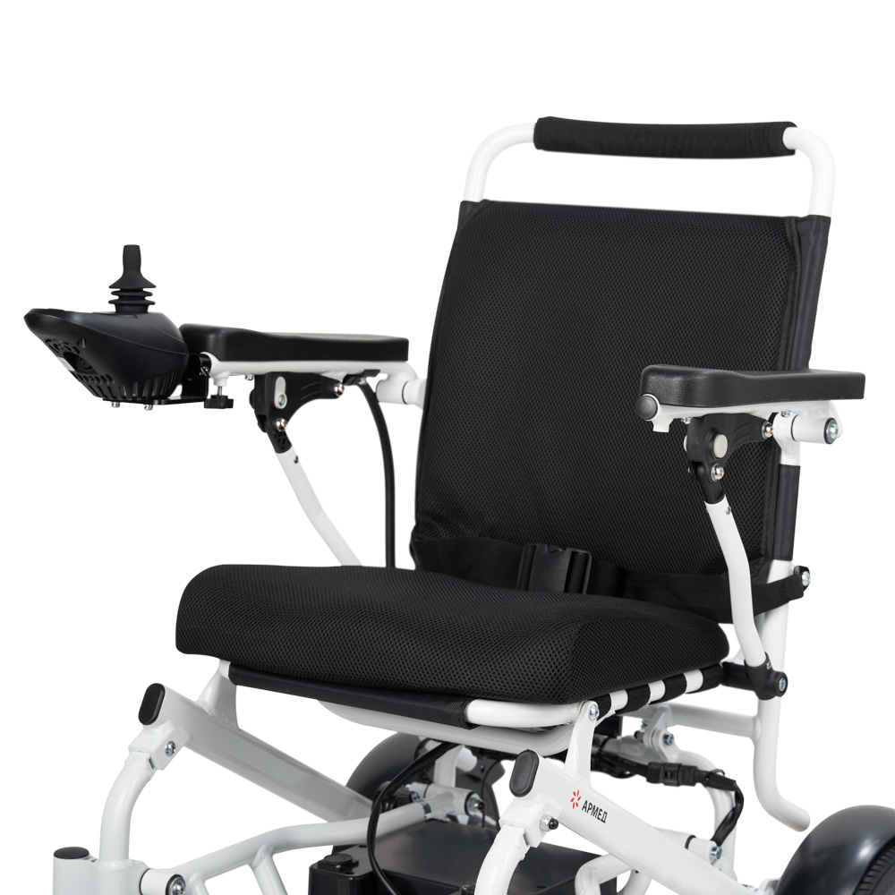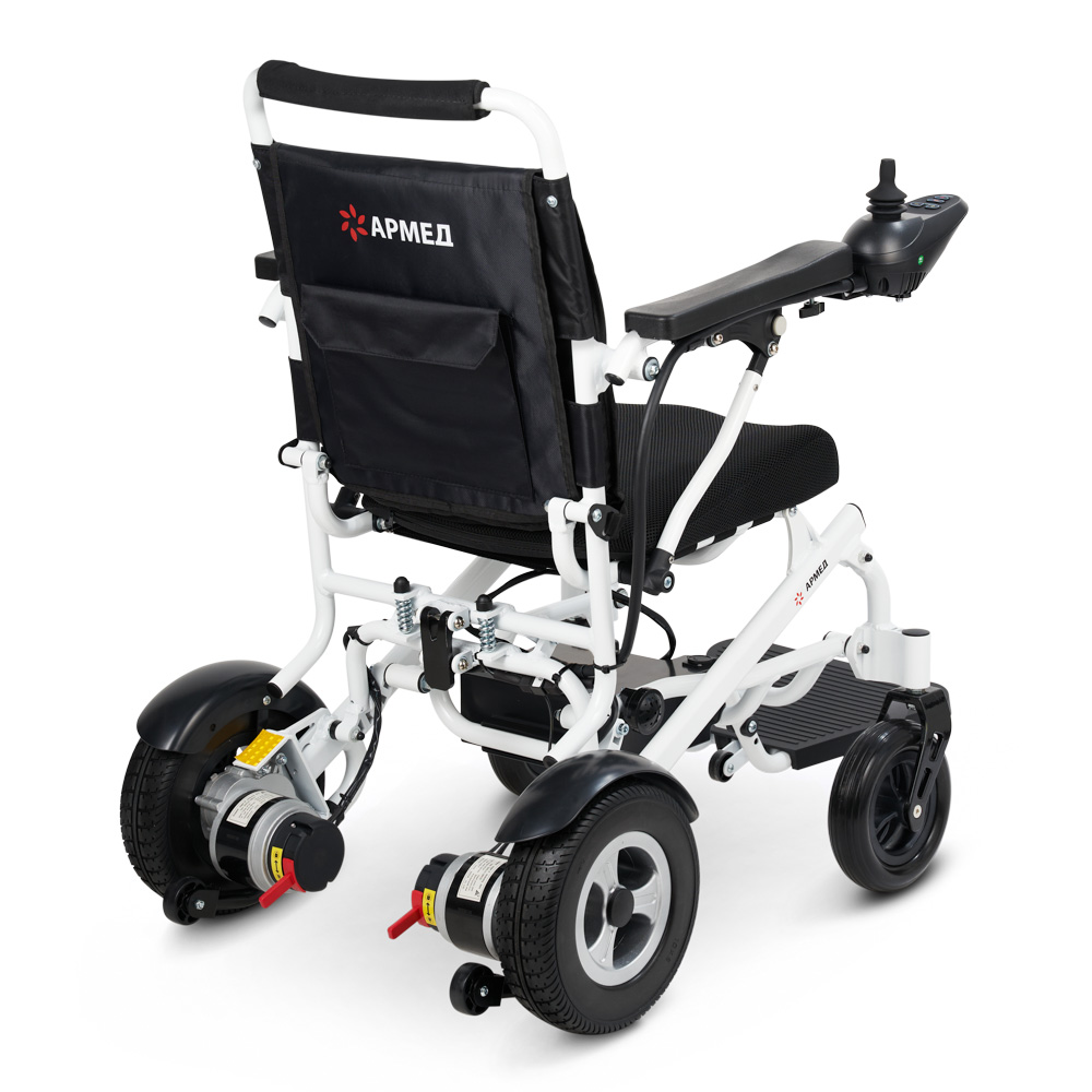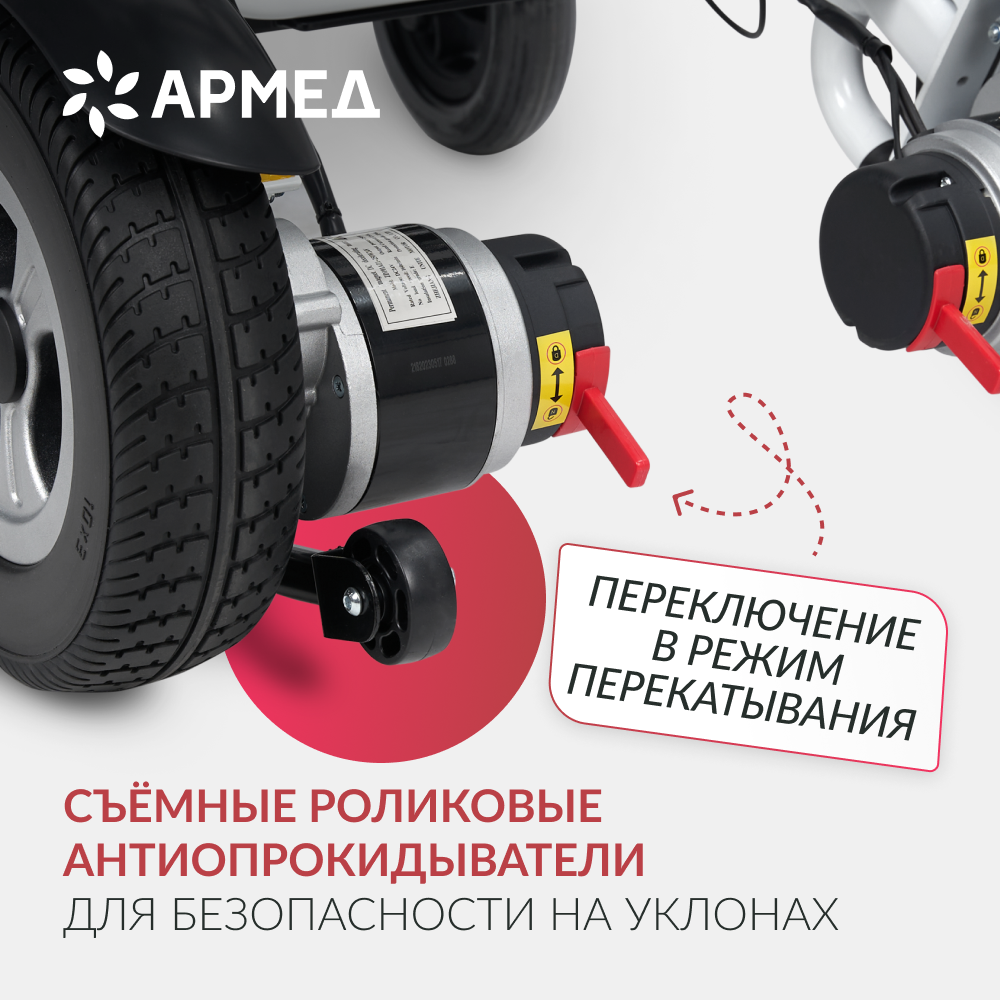 Кресло-коляска обладает хорошей статической устойчивостью, что позволяет человеку чувствовать себя спокойно при наклоне вперед и перемещении на край коляски. Батарея работает не менее 6-8 часов без подзарядки.