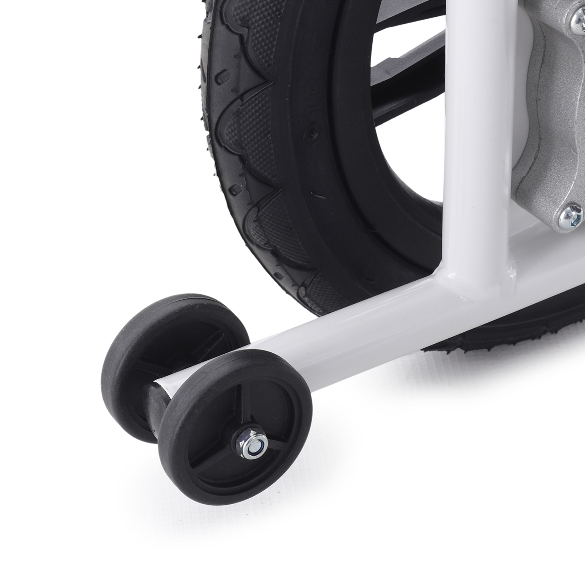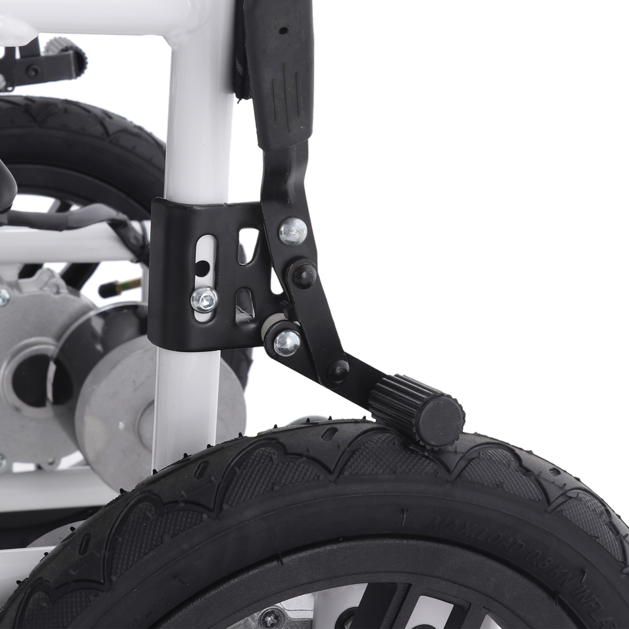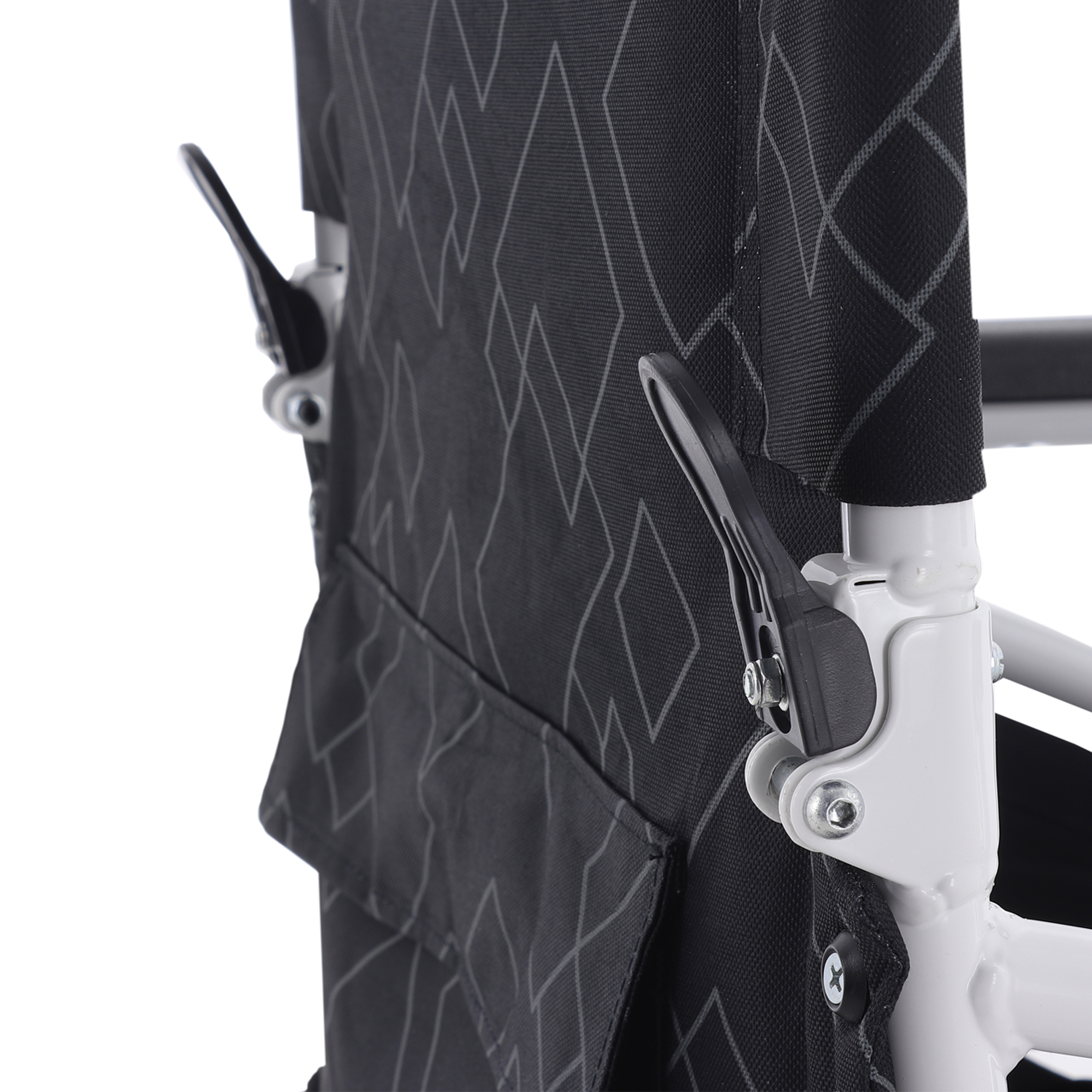 Рама: Складная, ножничная конструкция, изготовлена из стали с полимерно-порошковым покрытием. Быстросъемные антиопрокидыватели и складные ручки для удобства перемещения коляски.