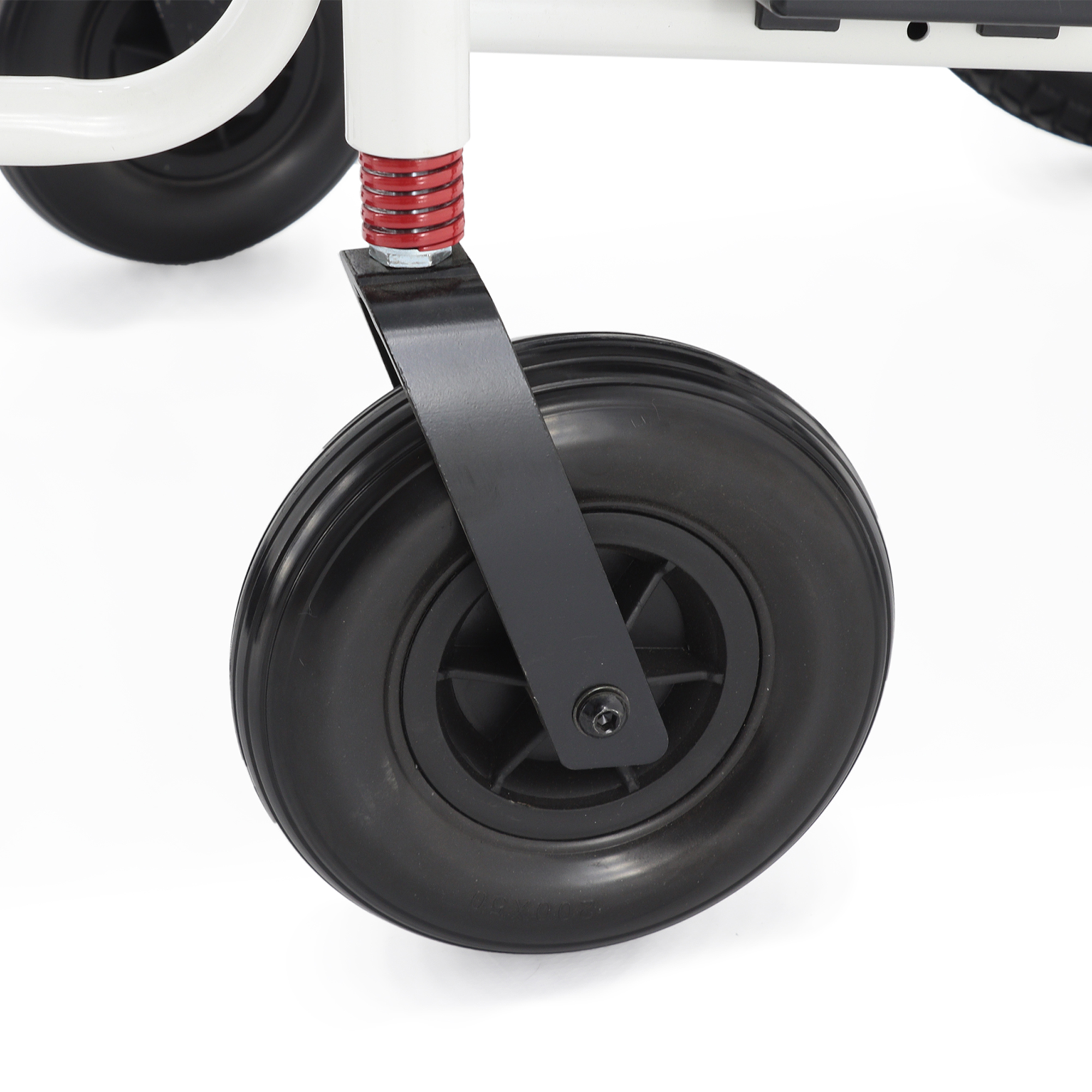 - Передние колеса: 18,9 см, из литого вспененного полиуретана с амортизирующими пружинами.