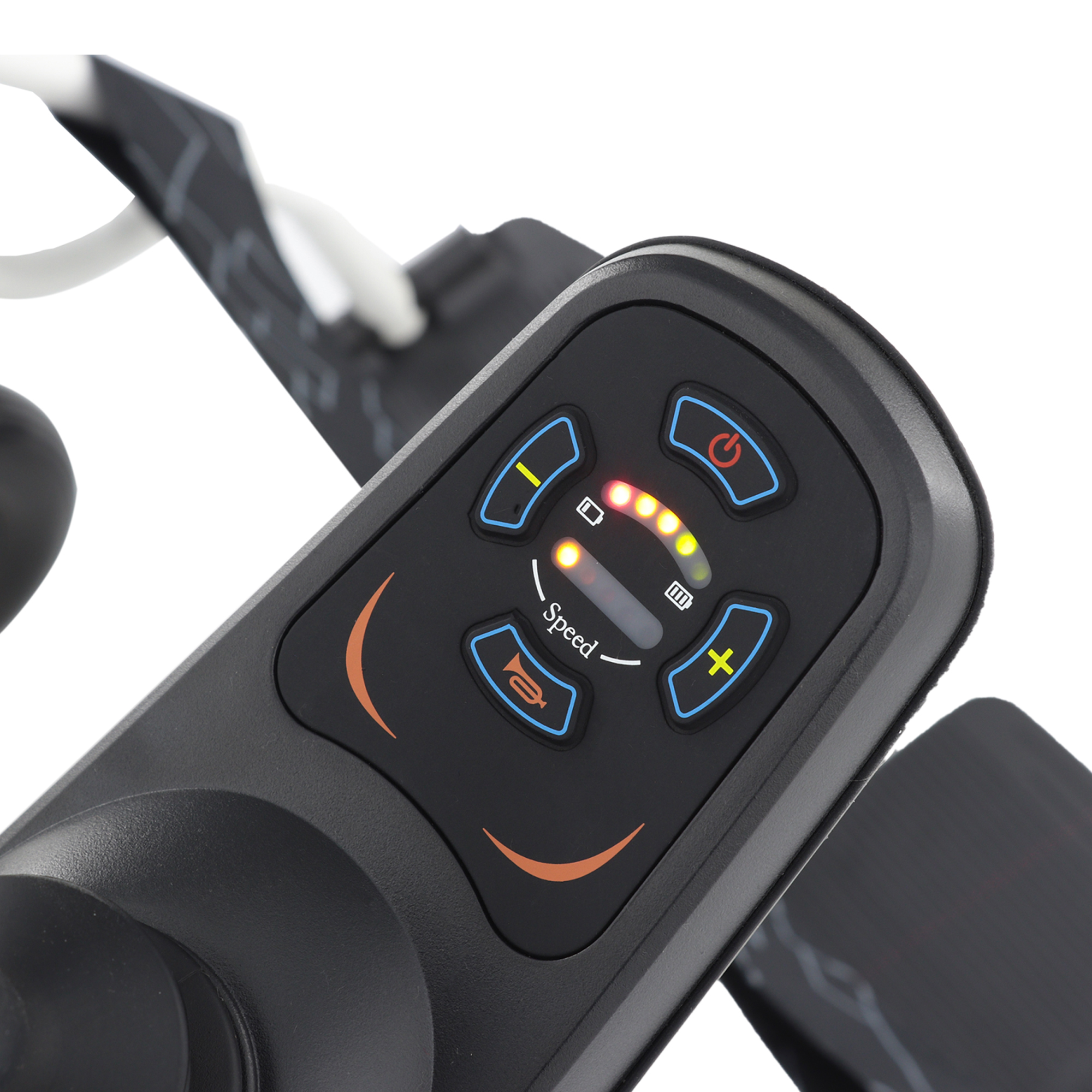 - Подходит для людей с разными физическими возможностями благодаря регулируемым подножкам и джойстику.