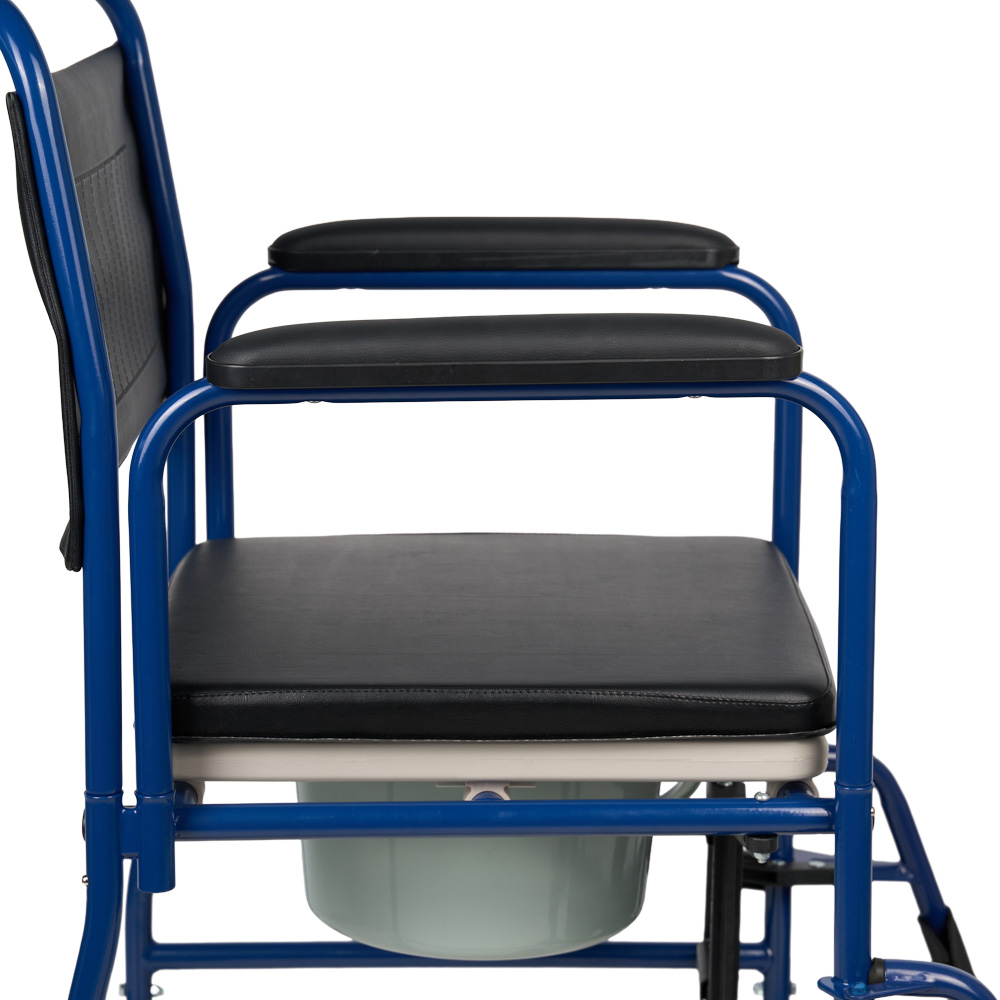 Простое и удобное кресло-коляска с санитарным оснащением. За счёт складной конструкции данную модель удобно хранить и брать с собой в поездки, не беспокоясь о доступности туалета в общественных местах.