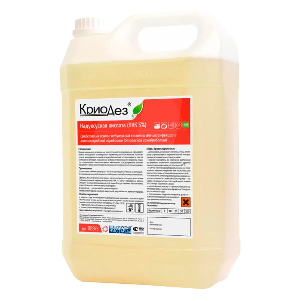 - для низкотемпературной дезинфекции предварительно вымытого технологического оборудования, коммуникаций, установок ультрафильтрации и обратного осмоса, оборотных пластиковых бутылей, тары и упаковки, инвентаря методом циркуляции в закрытых автоматизированных системах мойки (CIP-мойка), орошения, погружения.