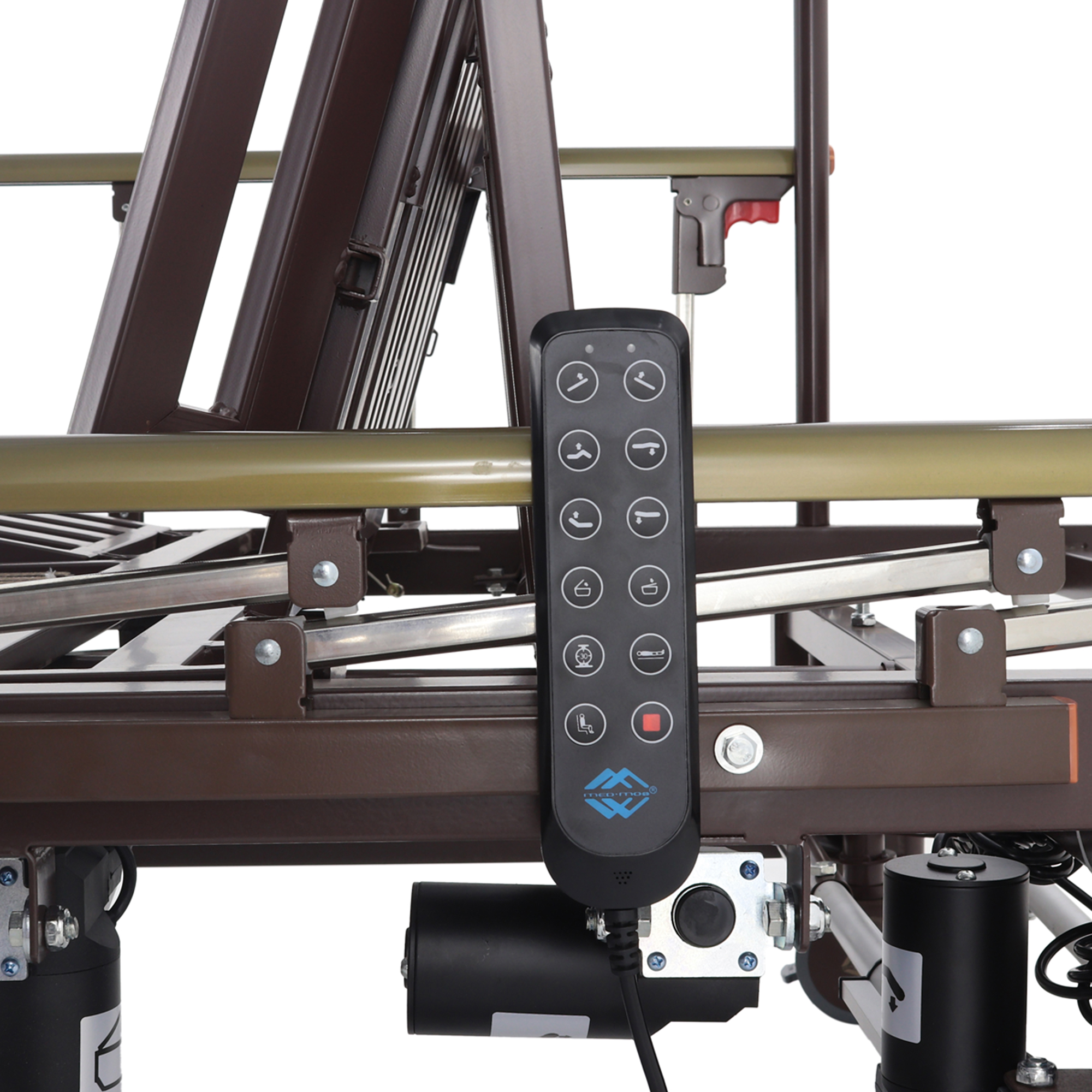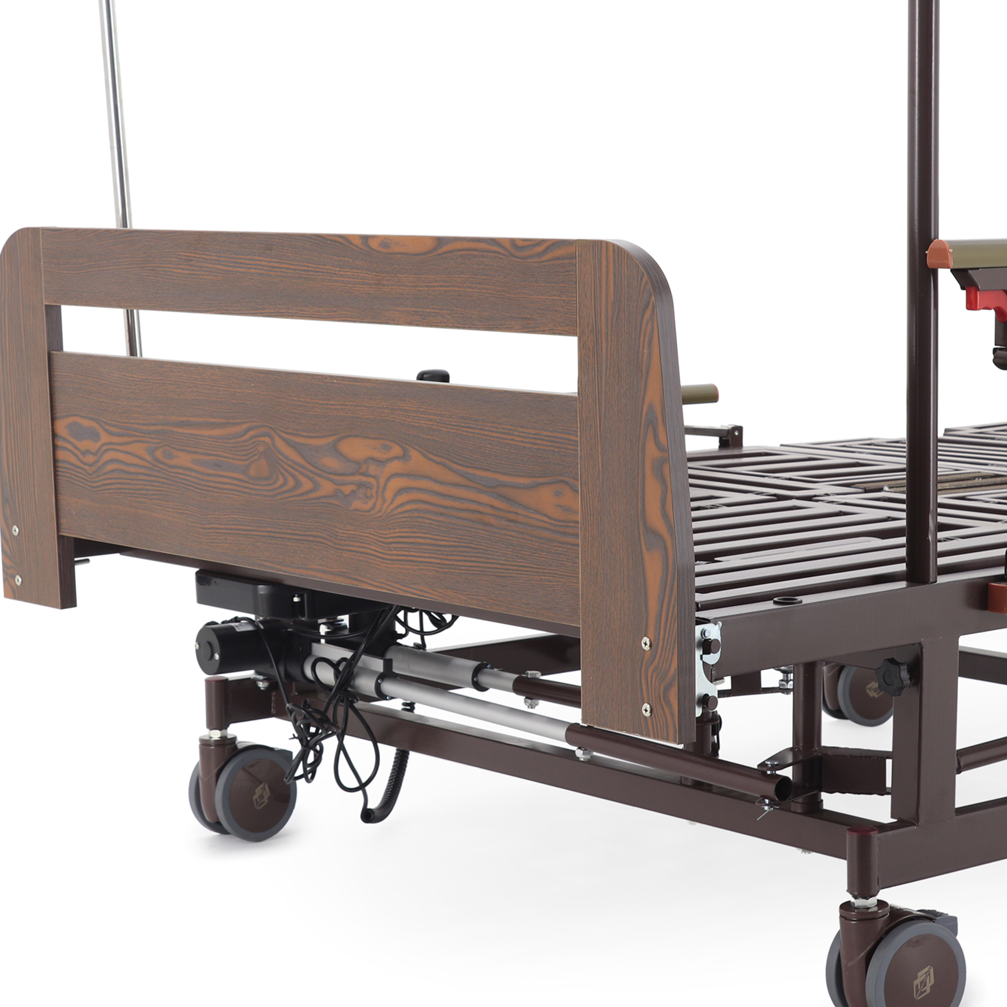 Кровать электрическая Med-Mos DB-11А (артикул DB-11А / МЕ-5528Н-05, Партия: 01DE080301-75/DE) – современное функциональное медицинское устройство, разработанное для обеспечения комфорта и удобства ухода за пациентами. Модель оснащена электрическими приводами, функцией бокового переворачивания, туалетным устройством xBIO II с судном и крышкой, а также функцией «кардиокресло». Торцевые спинки выполнены из ЛДСП в цвете венге, что придает кровати элегантный вид, подходящий для медицинских учреждений и домашнего использования. Новый прикроватный столик из ЛДСП дополняет комплектацию, обеспечивая дополнительное удобство.