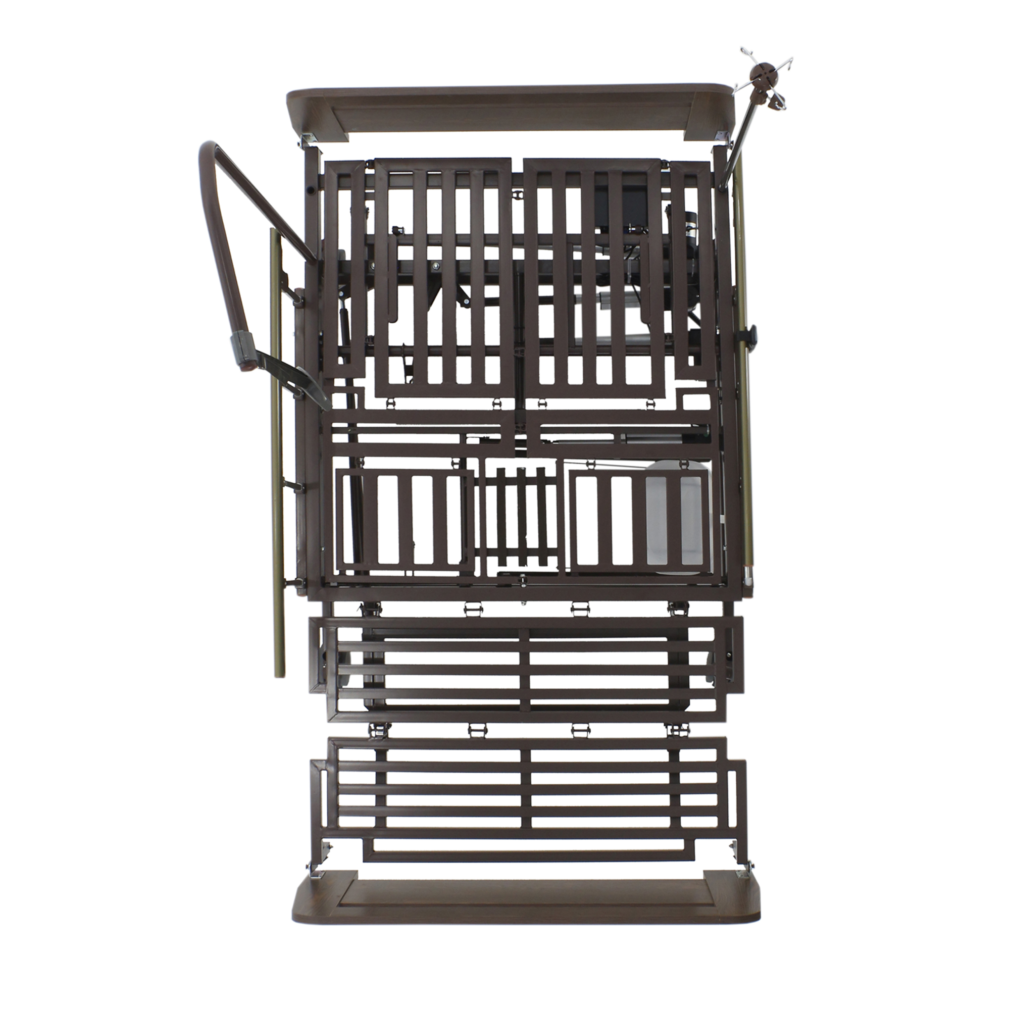 - Конструкция: Основание, 4 вертикальные опорные стойки, поручень, механизм фиксации в верхнем положении