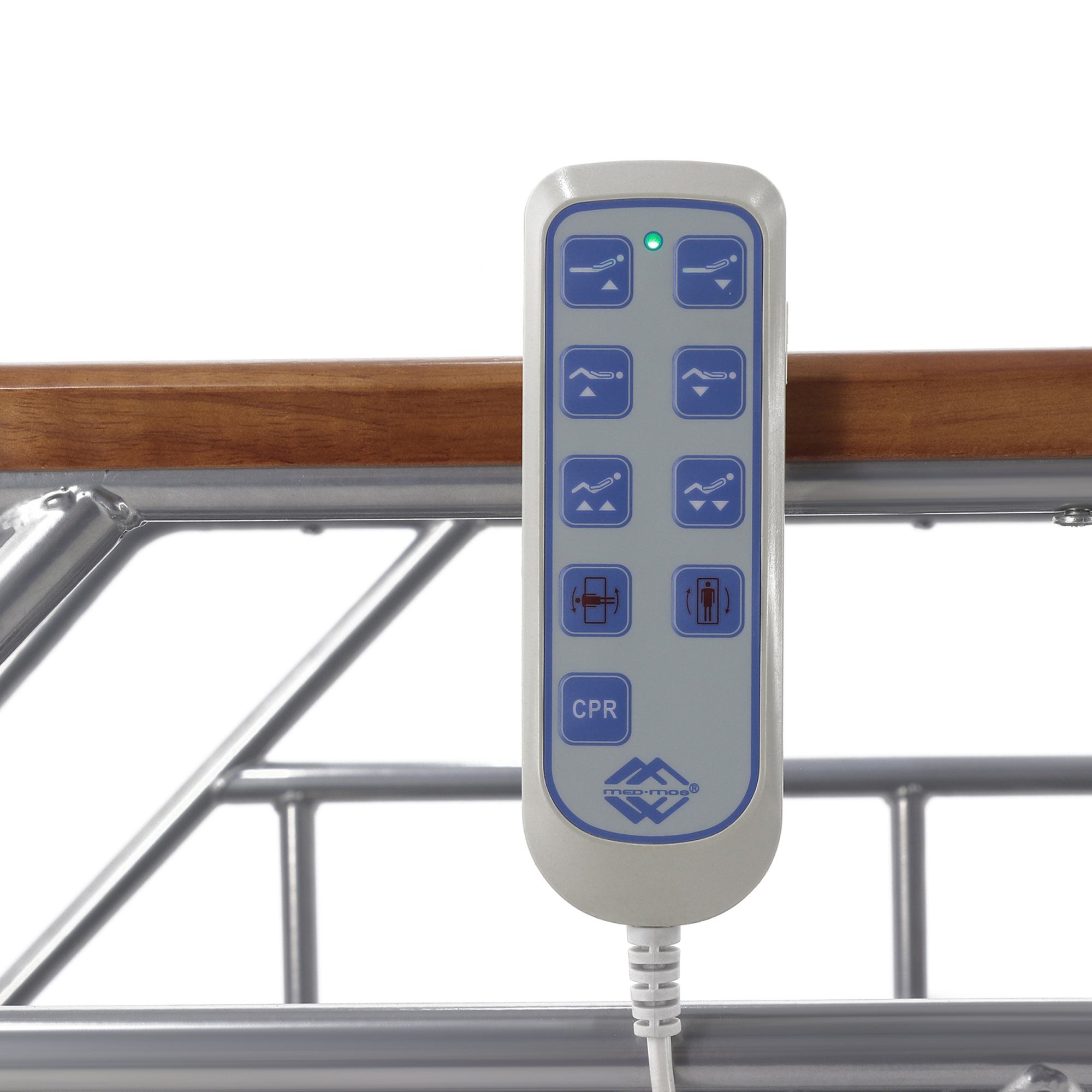 Конструкция кровати включает пять секций, три из которых (спинная, тазобедренная и икроножная) оснащены электроприводами для плавной регулировки. Система управления позволяет устанавливать различные положения: от полностью горизонтального до положения "кардиокресло" (с приподнятой спинкой для снижения нагрузки на сердце) и режима CPR (мгновенное выравнивание кровати для реанимационных мероприятий).
