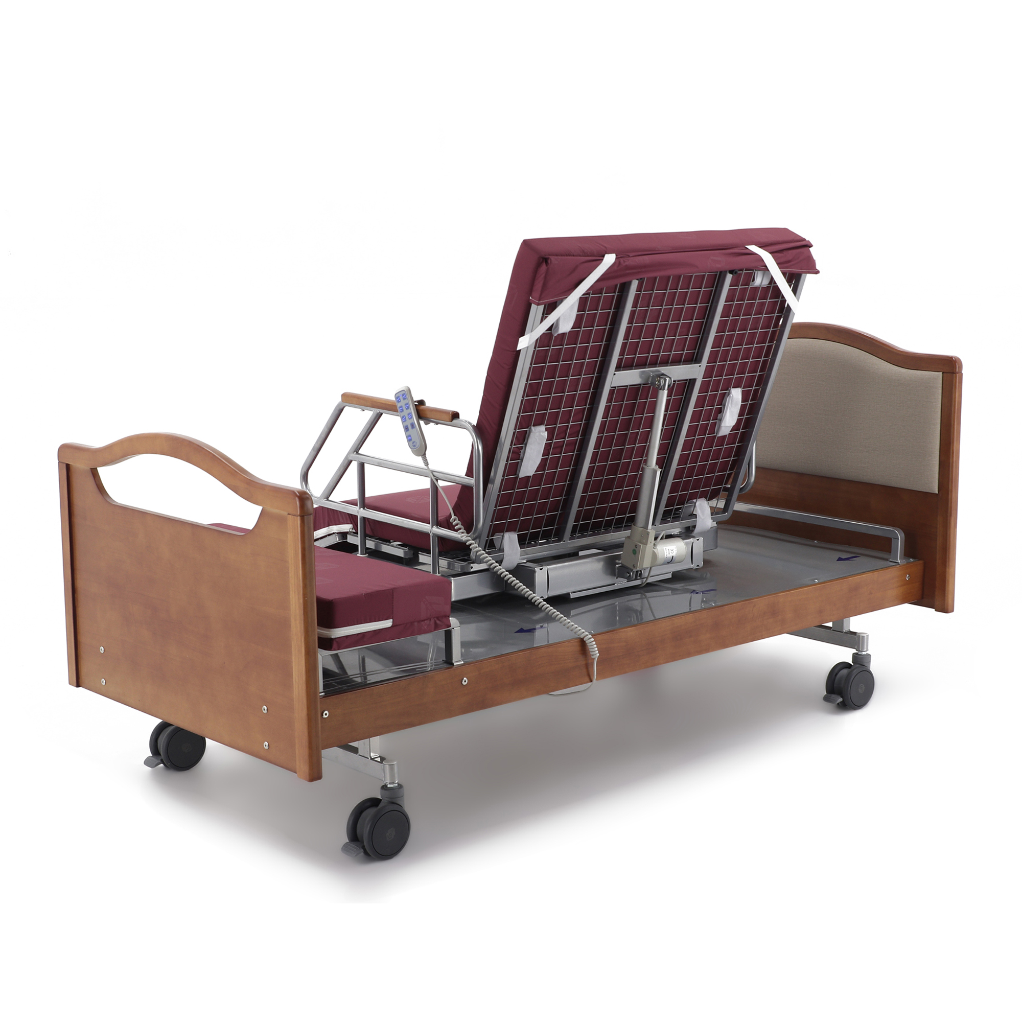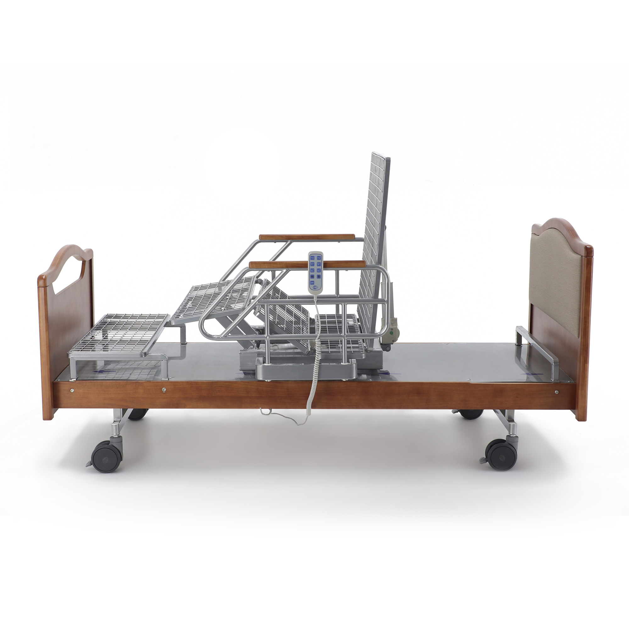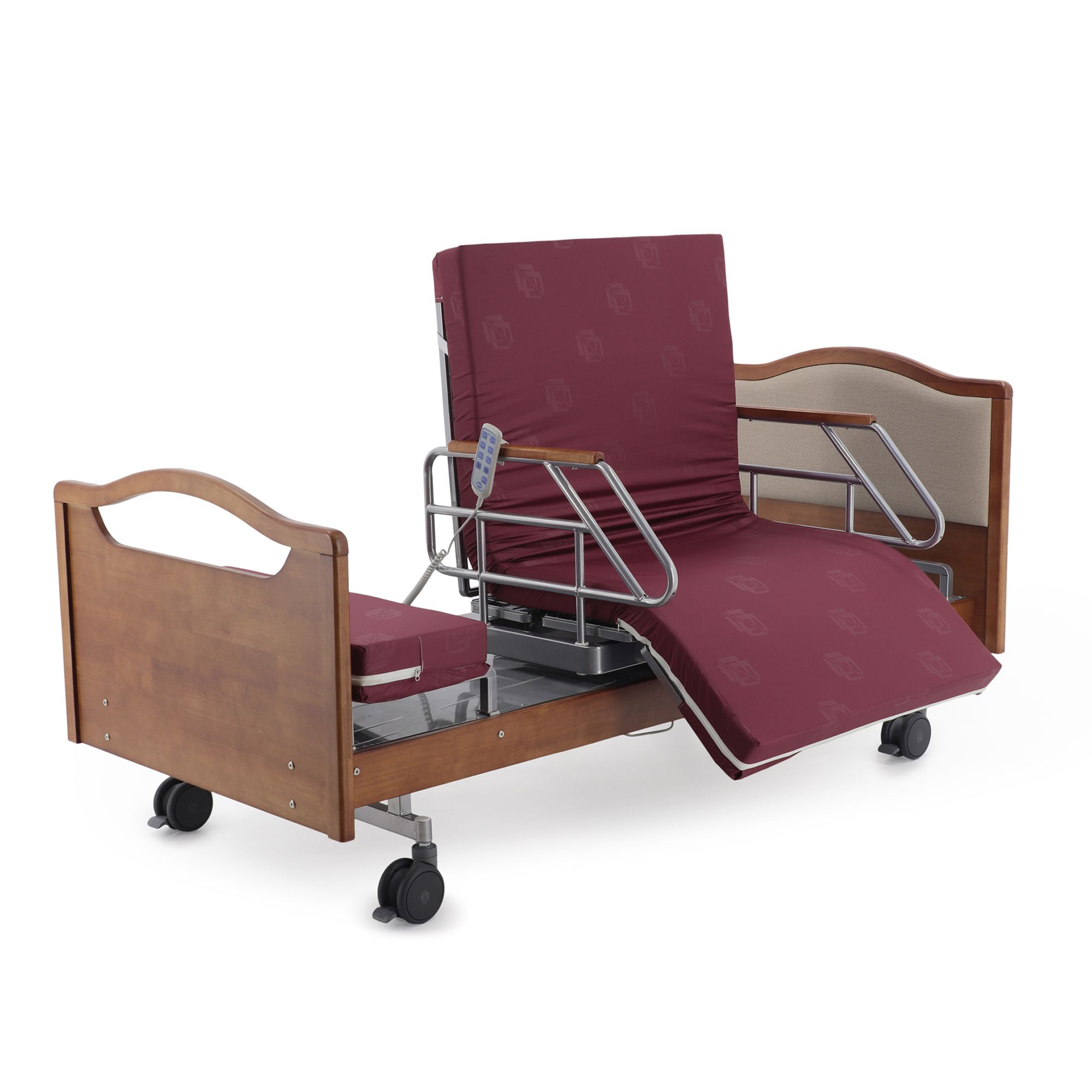 Кровать оснащена пятью секциями, три из которых (спинная, тазобедренная и икроножная) управляются при помощи электроприводов. Это позволяет легко изменять положение пациента для различных процедур, приема пищи или просто комфортного отдыха. Особенностью данной модели является поворот кресла в правую сторону, что делает ее особенно удобной для пациентов с определенными видами травм или после операций.