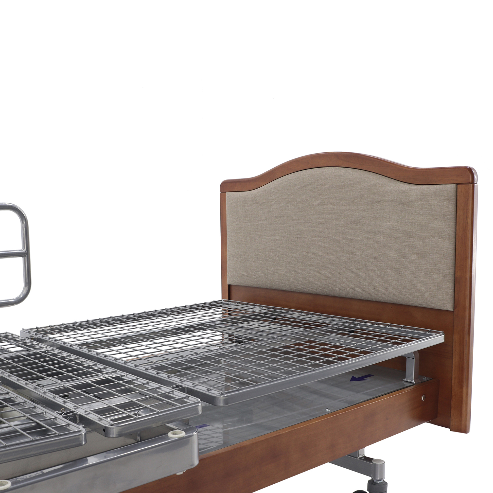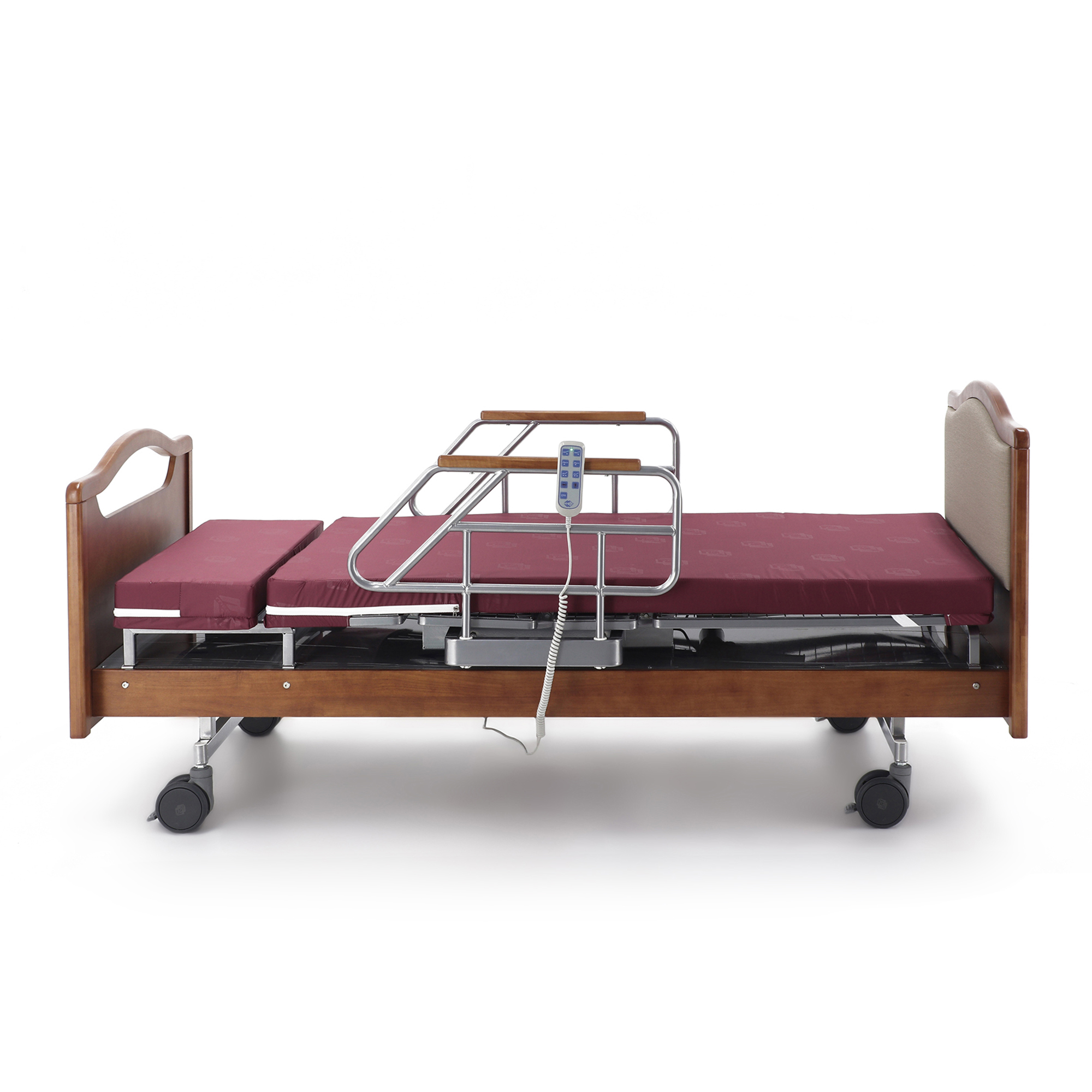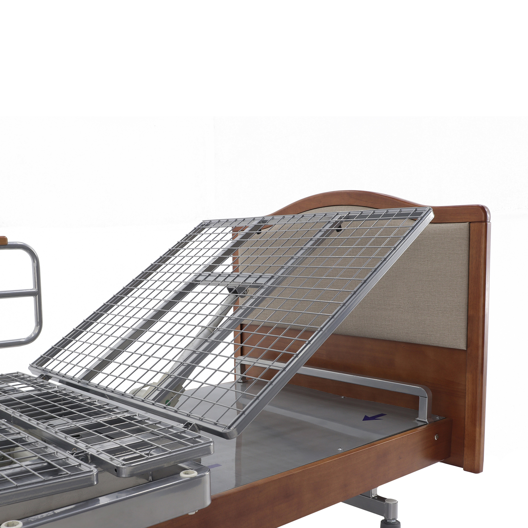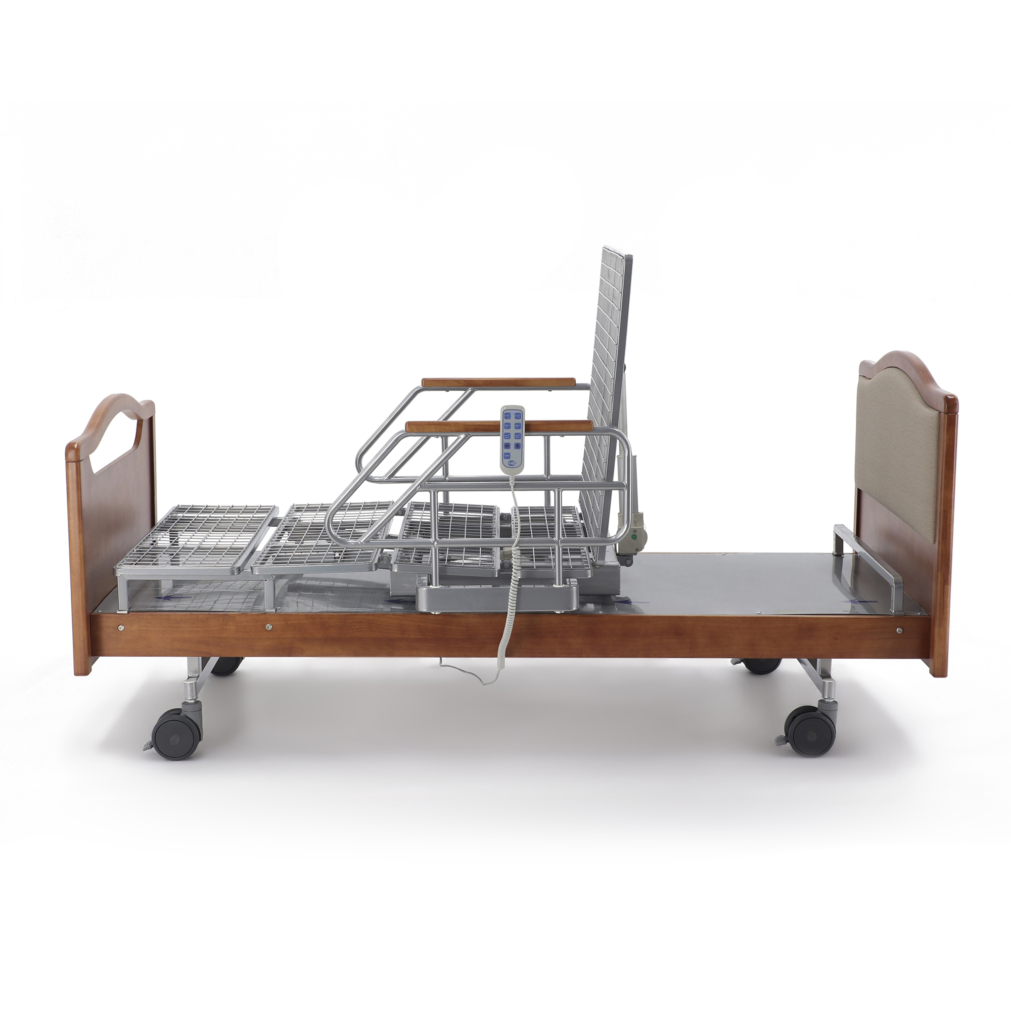Кровать оснащена пятью секциями, три из которых (спинная, тазобедренная и икроножная) управляются при помощи электроприводов. Это позволяет легко изменять положение пациента для различных процедур, приема пищи или просто комфортного отдыха. Особенностью данной модели является поворот кресла в правую сторону, что делает ее особенно удобной для пациентов с определенными видами травм или после операций.