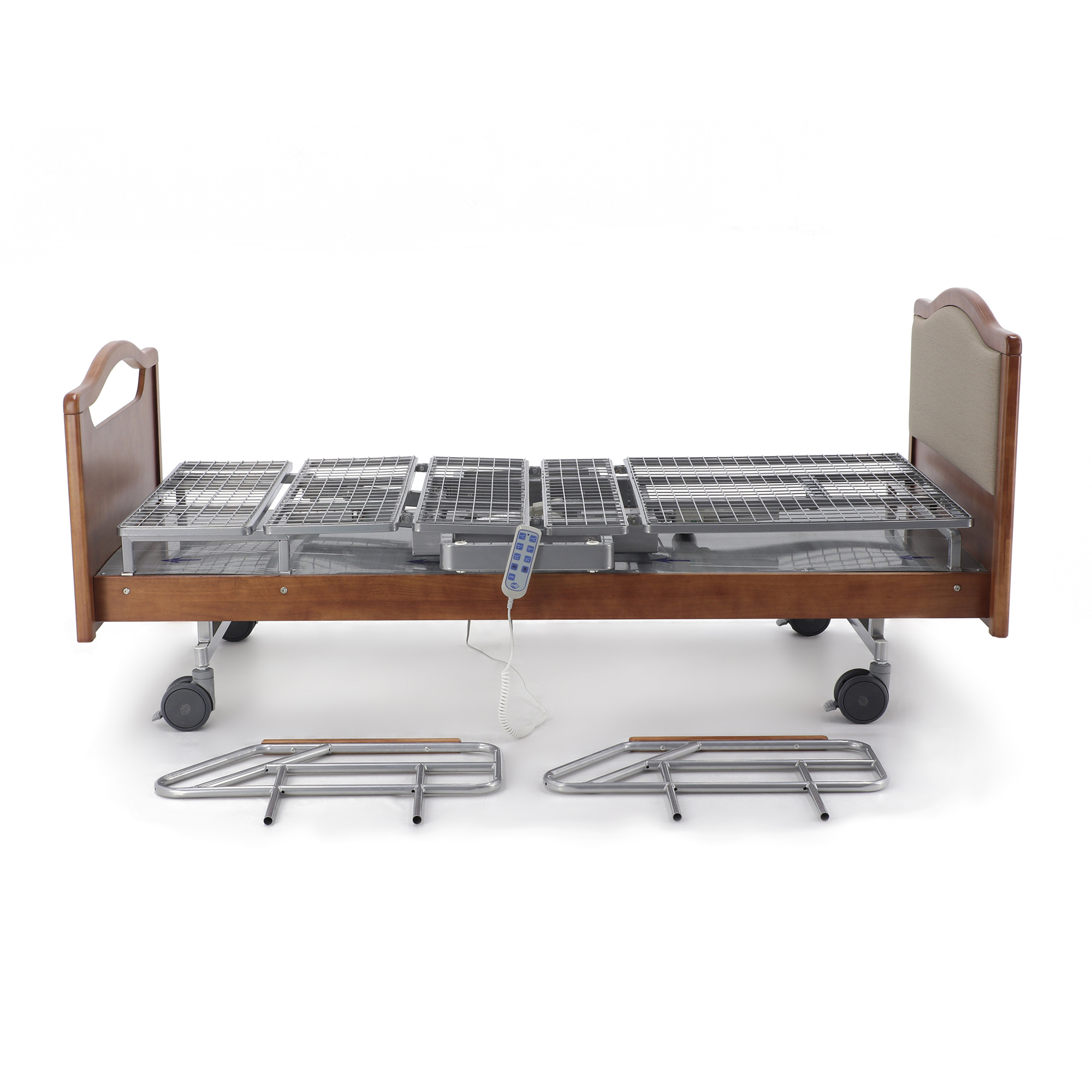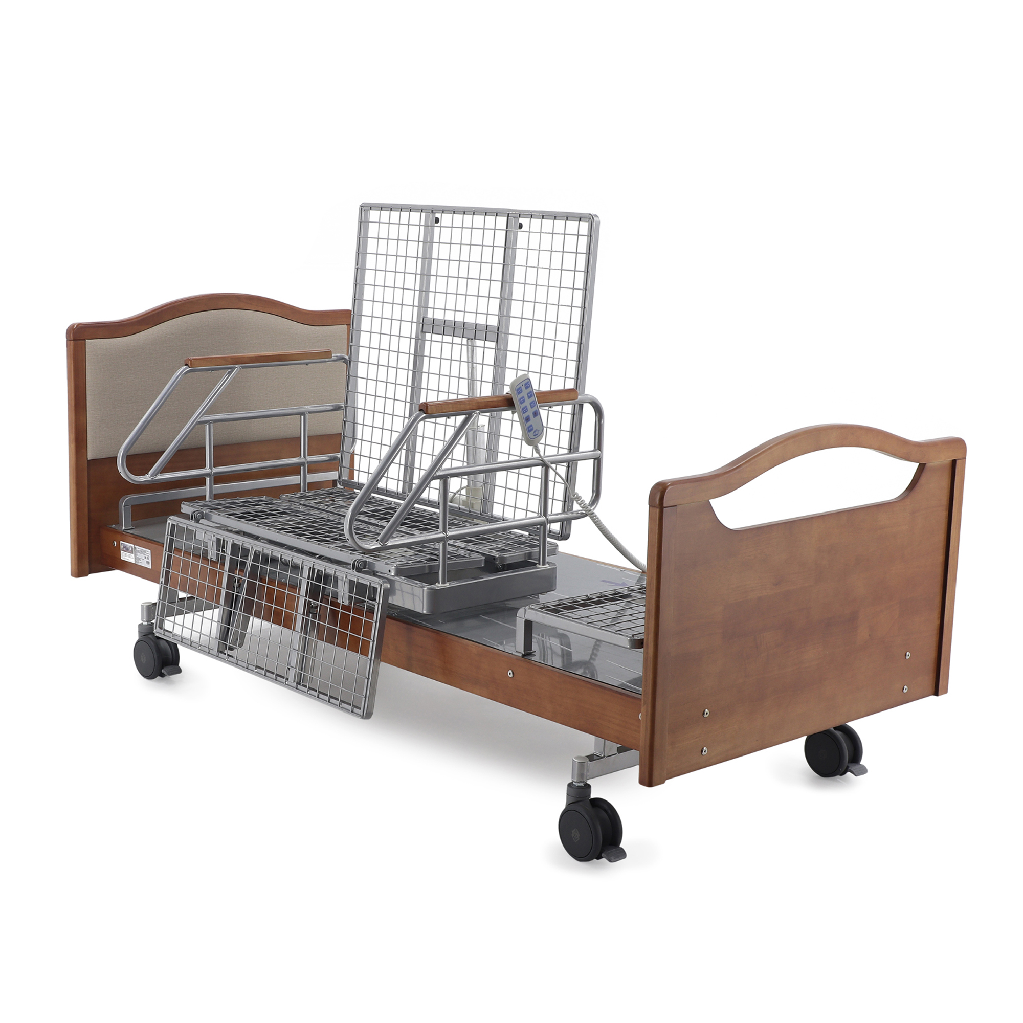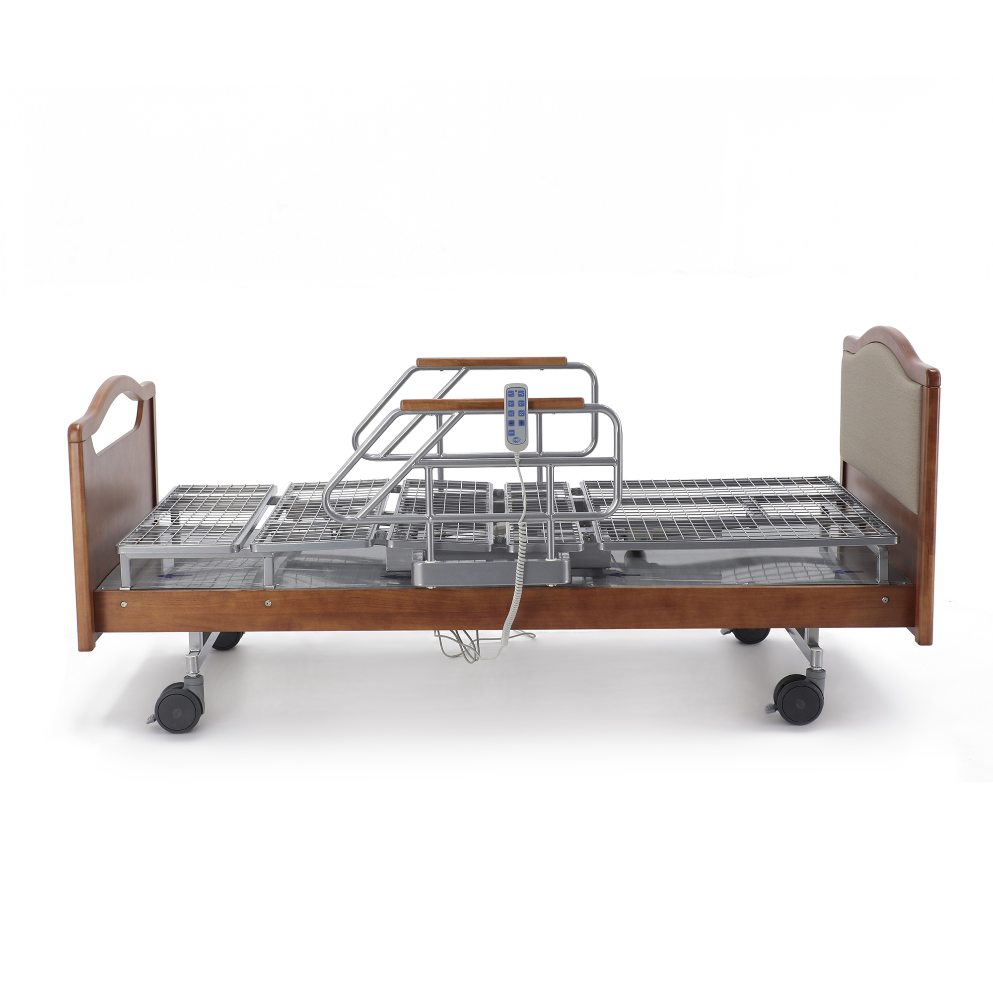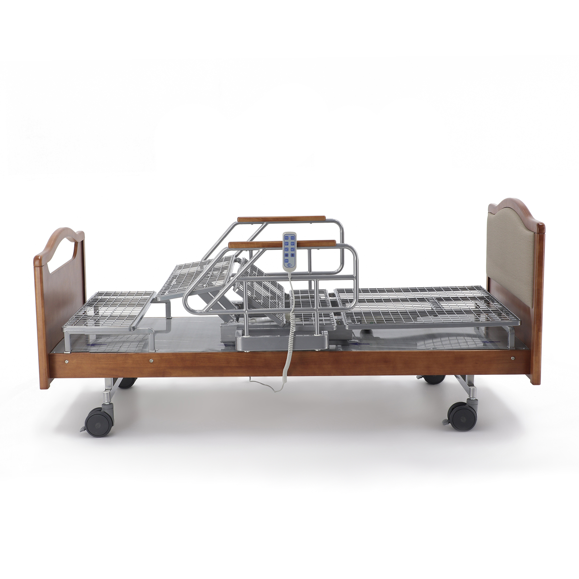 Кровать оснащена пятью секциями, три из которых (спинная, тазобедренная и икроножная) управляются при помощи электроприводов. Это позволяет легко изменять положение пациента для различных процедур, приема пищи или просто комфортного отдыха. Особенностью данной модели является поворот кресла в правую сторону, что делает ее особенно удобной для пациентов с определенными видами травм или после операций.