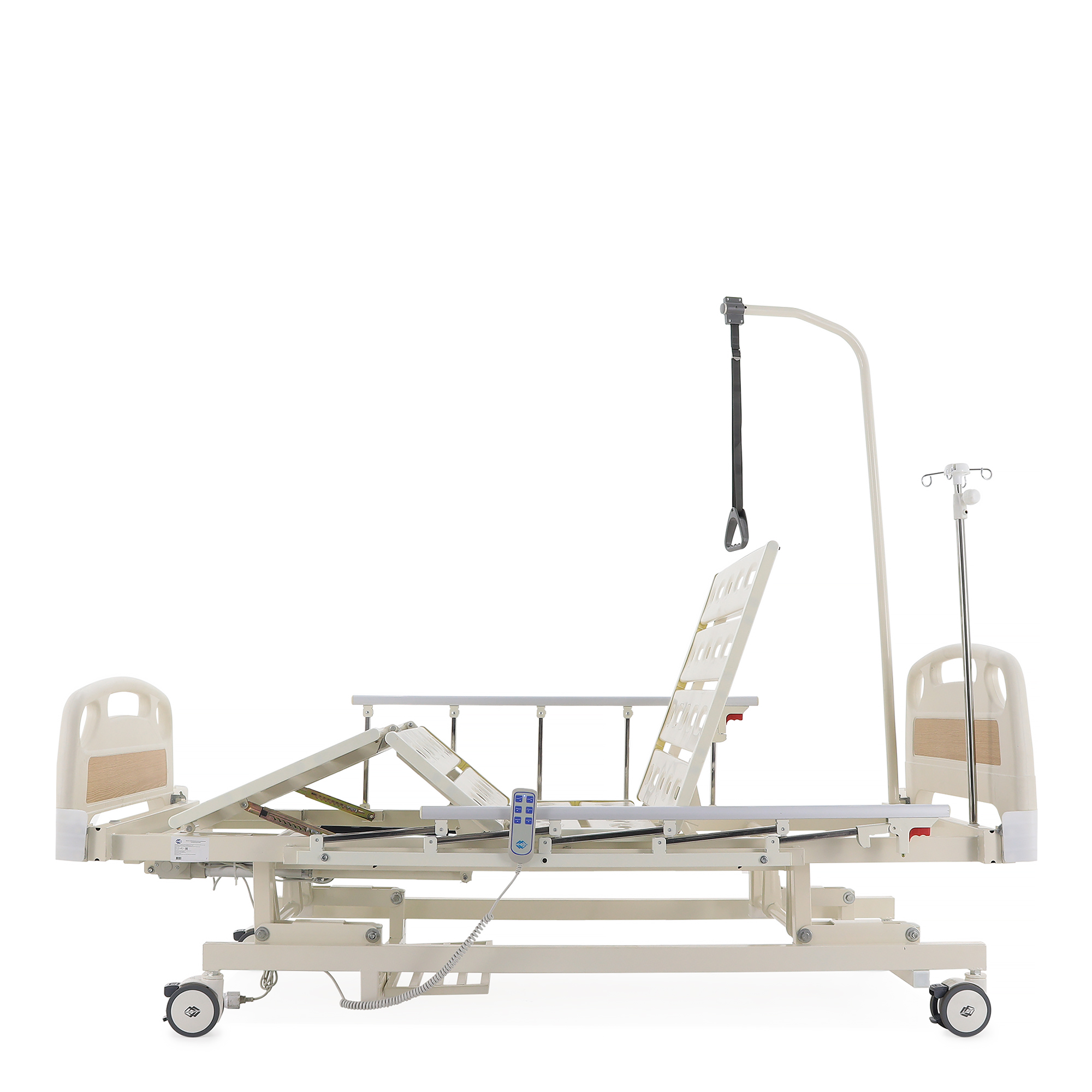 - Боковые ограждения: фиксируются автоматически в верхнем положении, обеспечивают безопасность пациента.