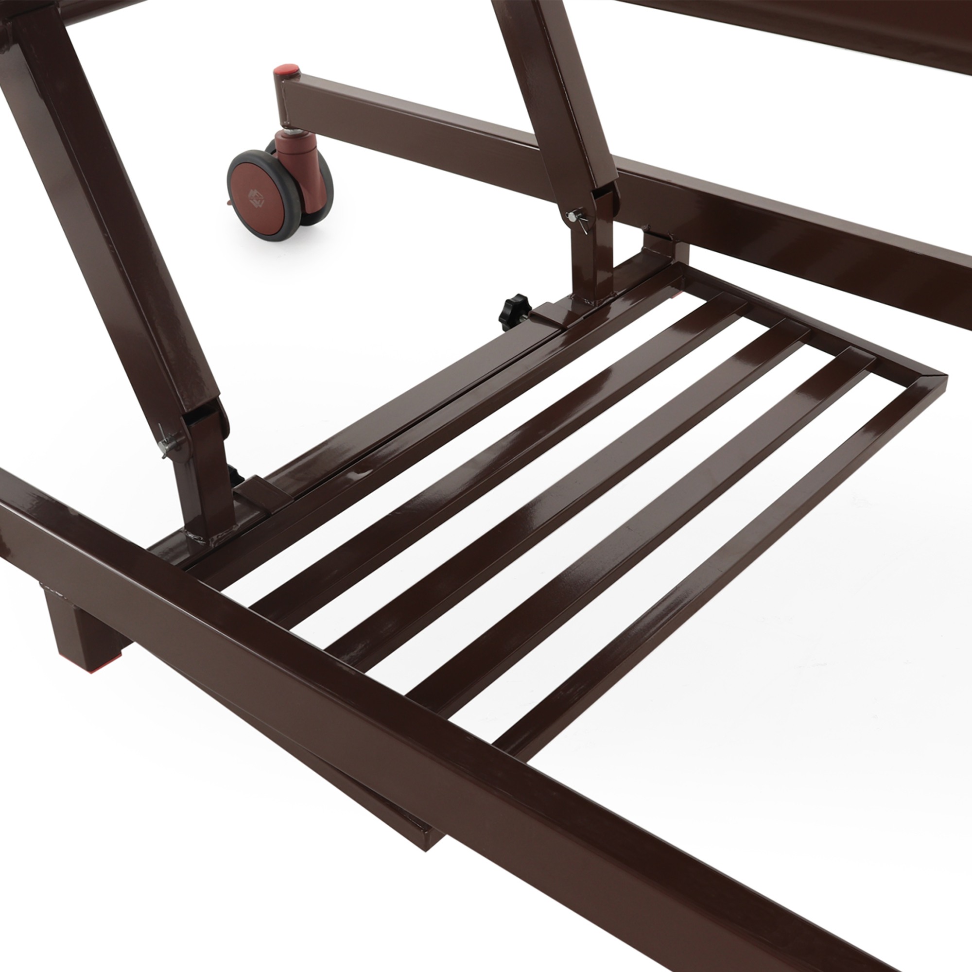 Диапазон регулировки высоты ложа – 440 мм. Гибридный привод обеспечивает плавное поднятие ложа с возможностью ручного управления, дополненное газовой пружиной для облегчения подъема.