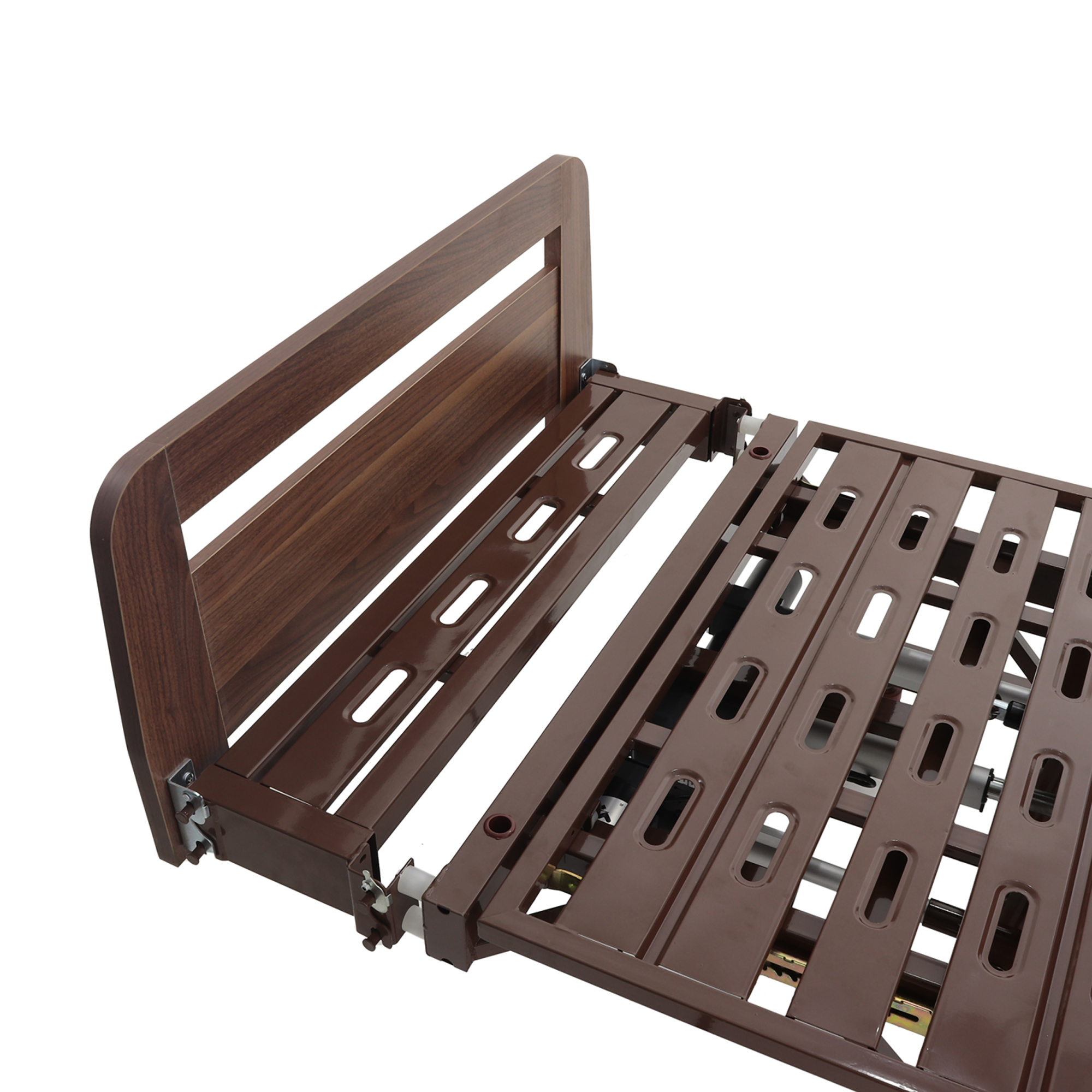 Кровать оснащена гибридной системой привода, которая сочетает электрический линейный актуатор с возможностью ручного управления через съемную S-образную рукоять. Это позволяет осуществлять регулировку положений даже при отсутствии электричества.