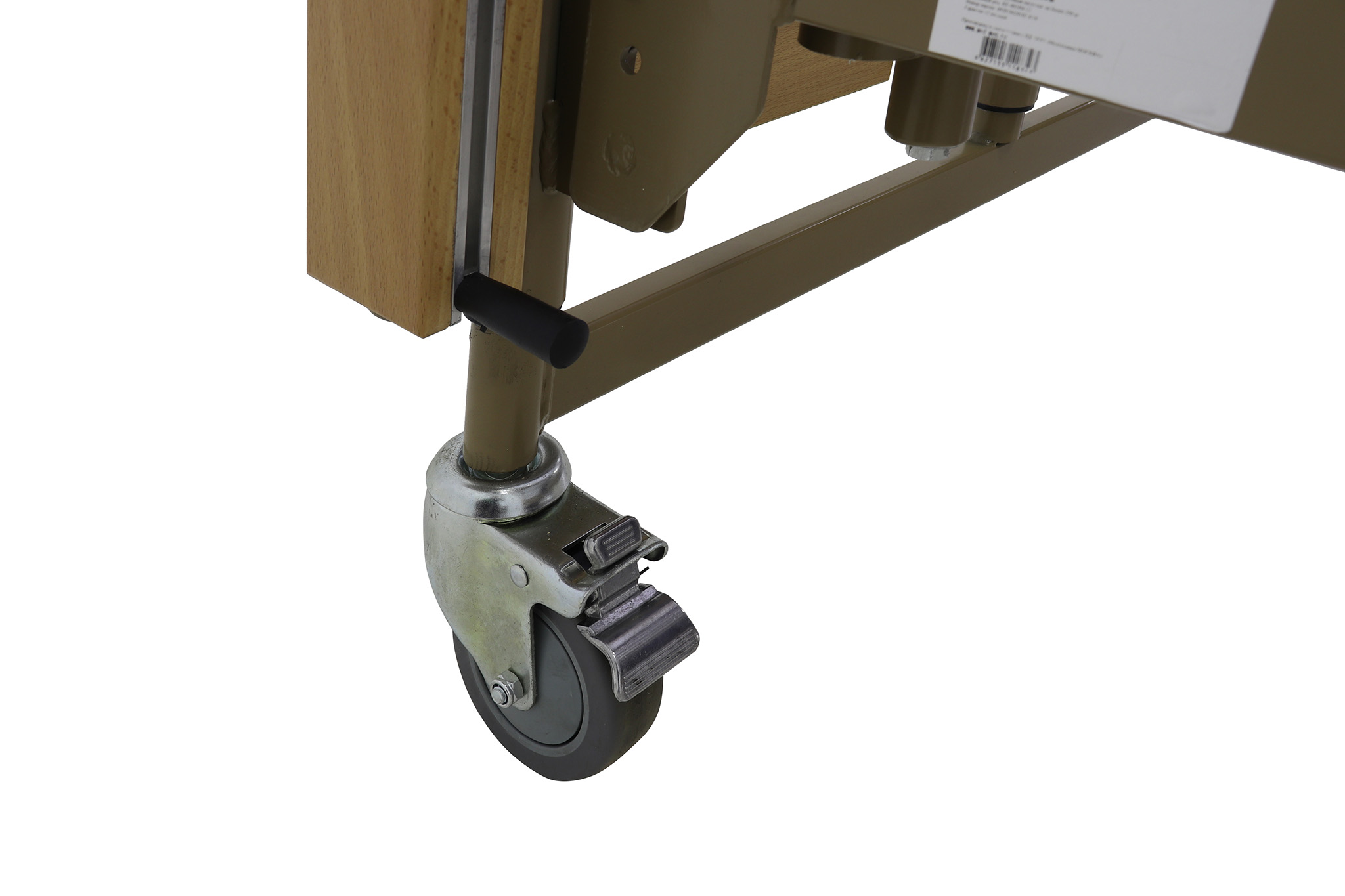 • Четыре самоориентирующихся одинарных колеса (_100 мм) с полиуретановыми шинами позволяют свободно маневрировать кроватью в пределах палаты.
