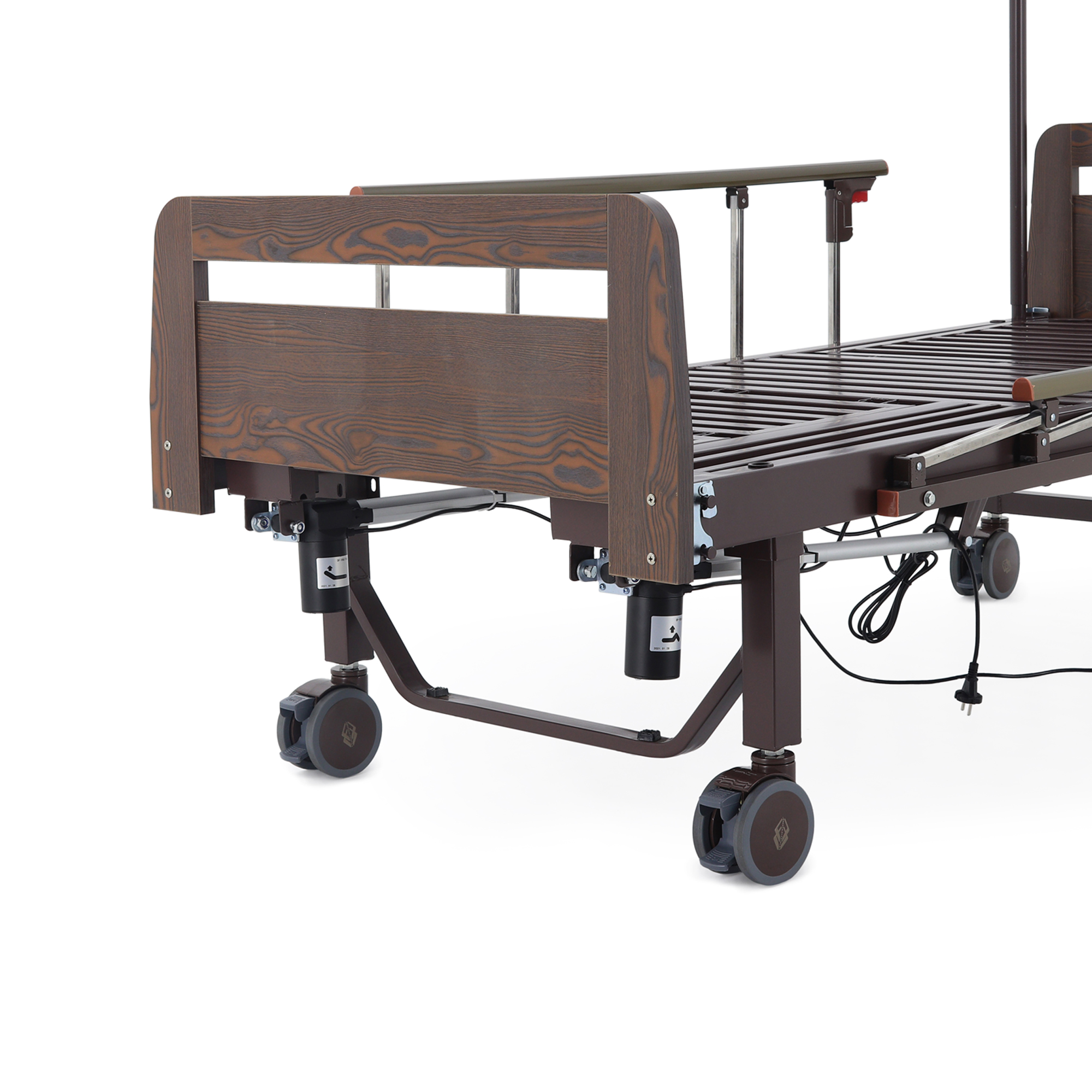 Кровать оснащена 2 электроприводами, позволяющими плавно и точно изменять углы наклона секций, а гибридный привод обеспечивает возможность ручного управления при отключении электроэнергии.