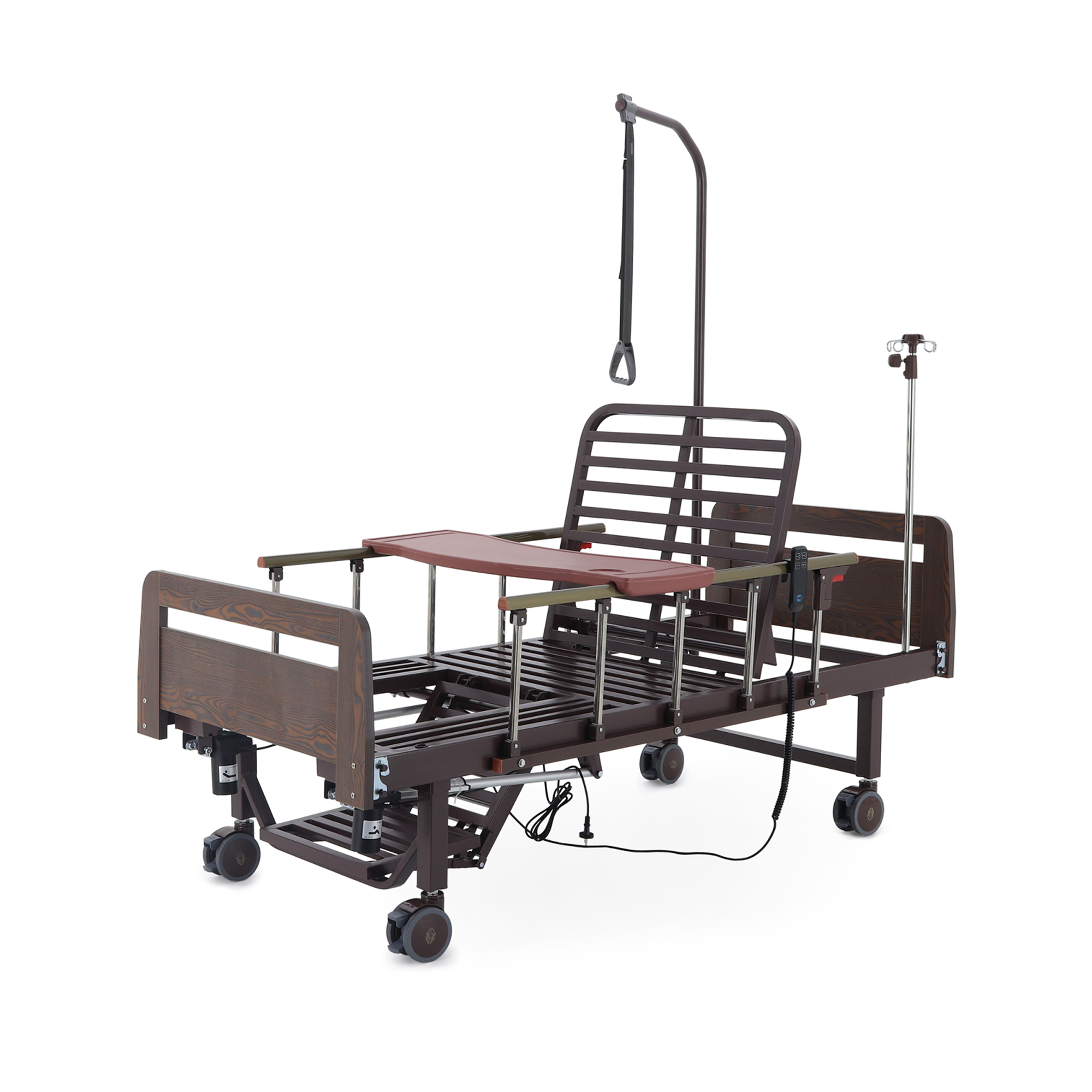Электрическая кровать Med-Mos YG-2 (артикул МЕ-2018Н-01) – современное медицинское оборудование, разработанное для создания оптимальных условий ухода за пациентом в лечебных учреждениях. Модель оснащена электрическим приводом для точной регулировки положения ложа и функцией «кардиокресло», позволяющей опустить ножные секции ниже уровня основного ложа для комфортного сидячего положения пациента. Изделие выполнено с использованием отделки из ЛДСП венге и не содержит туалетного устройства, что делает его оптимальным выбором для учреждений, где базовый функционал с акцентом на безопасность и эргономику имеет первостепенное значение.