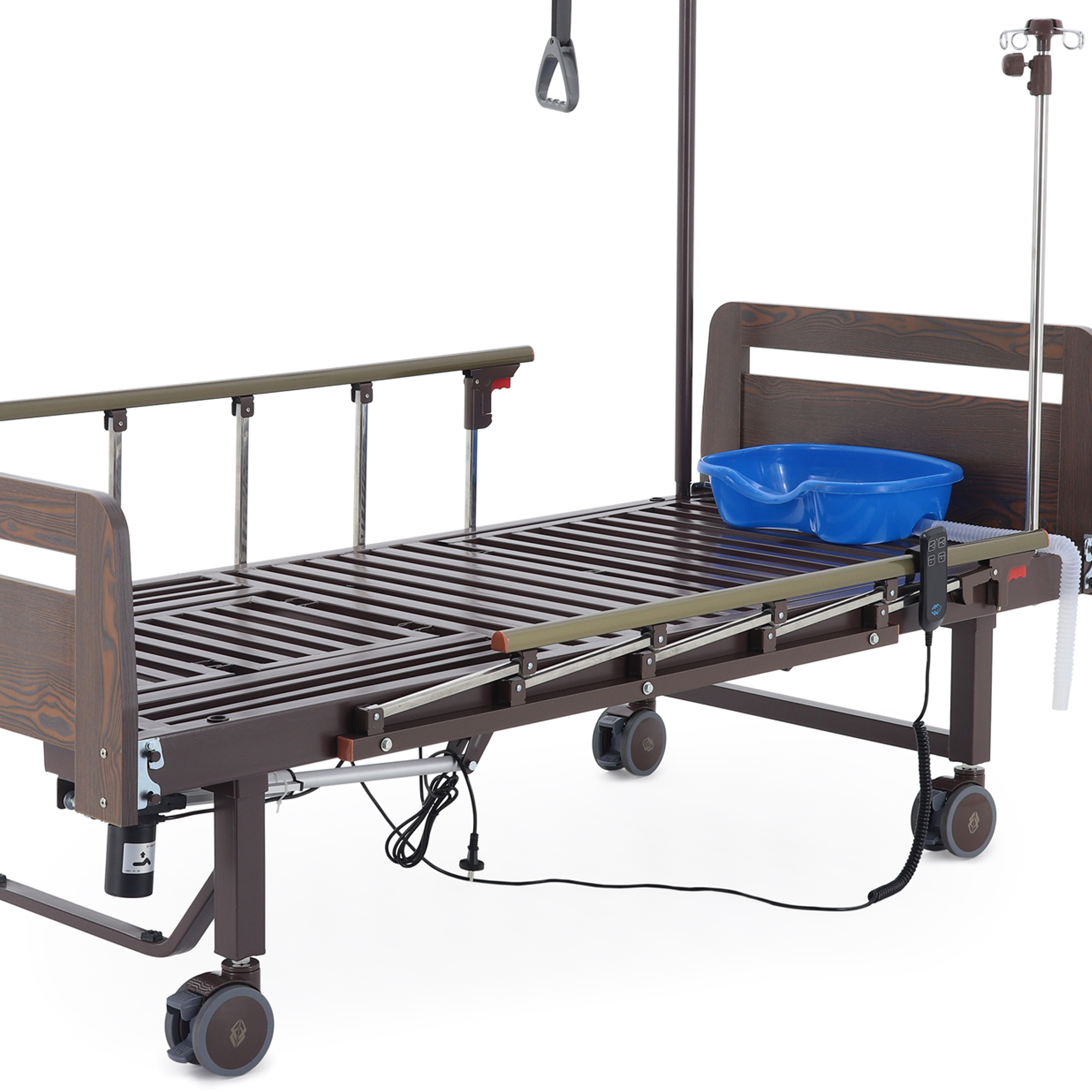 - К кровати предусмотрены 4 крючка для мочеприемников.