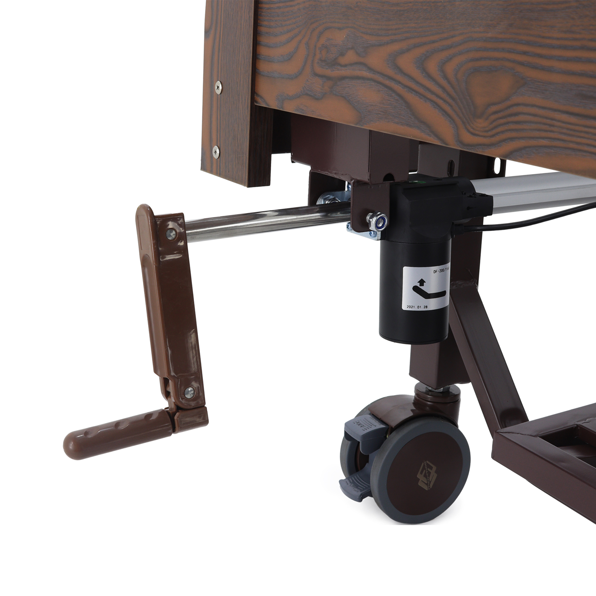 Электрический линейный актуатор с возможностью ручного управления посредством съемной S-образной рукояти обеспечивает плавное и точное изменение углов наклона секций даже при отсутствии электричества.