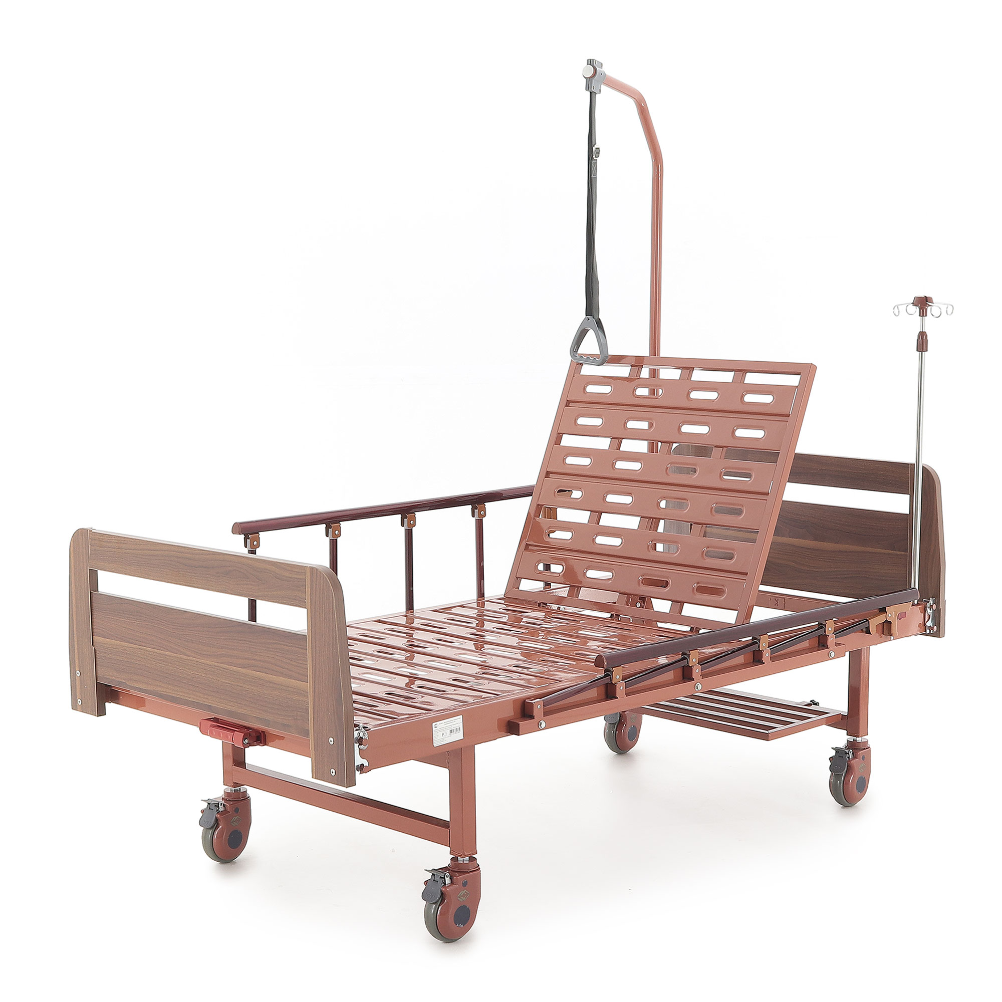 Медицинская функциональная кровать Med-Mos E-17B — это механическая модель, предназначенная для ухода за пациентами в стационарах или дома. Простая и надежная конструкция с отделкой из ЛДСП в цвете «светлое дерево» сочетает практичность и эстетичный дизайн. Подходит для базовых медицинских нужд благодаря регулируемой спинной секции и прочной раме.