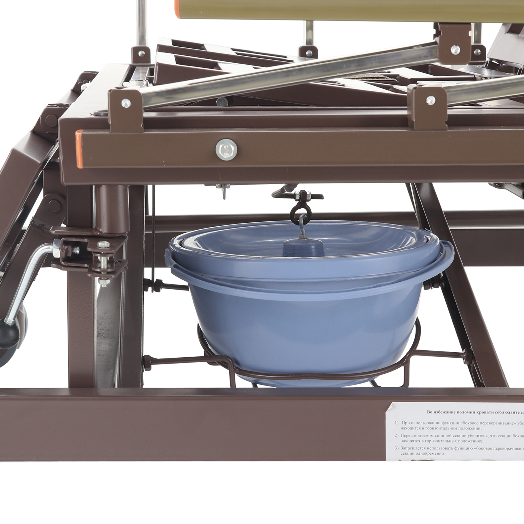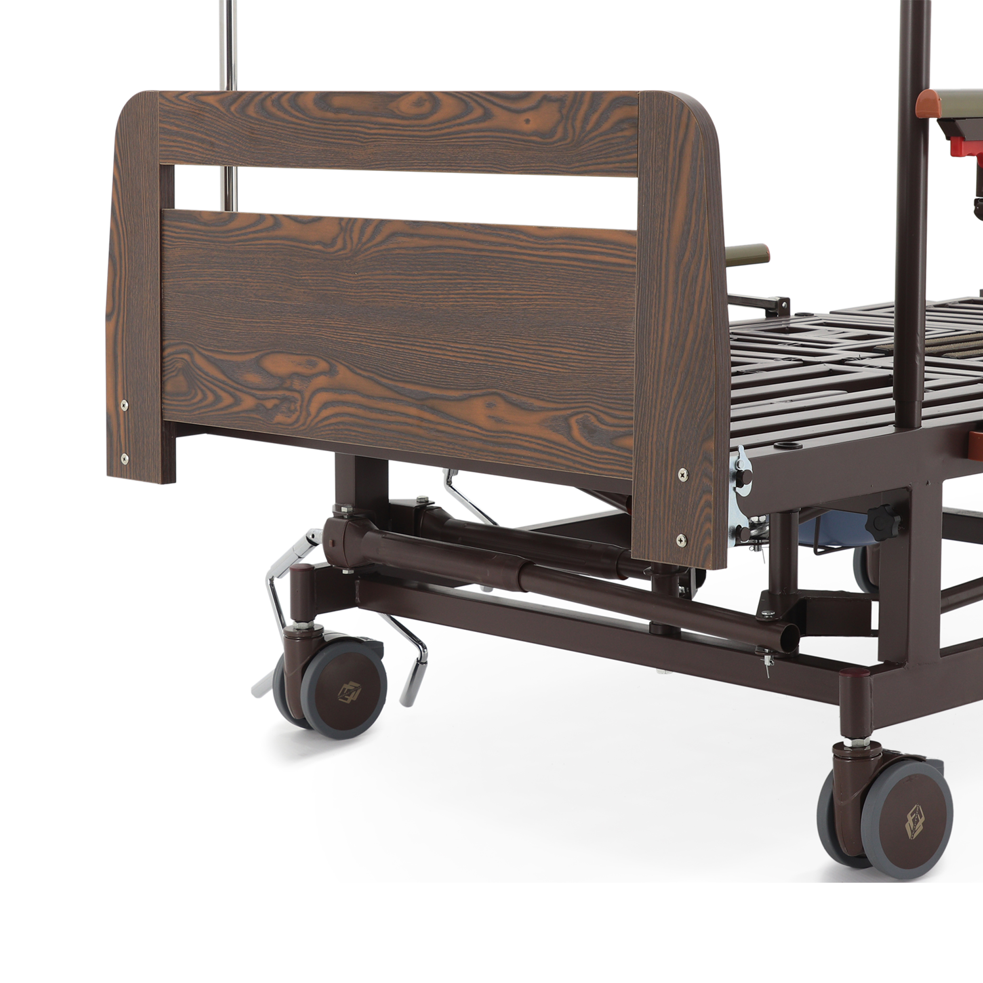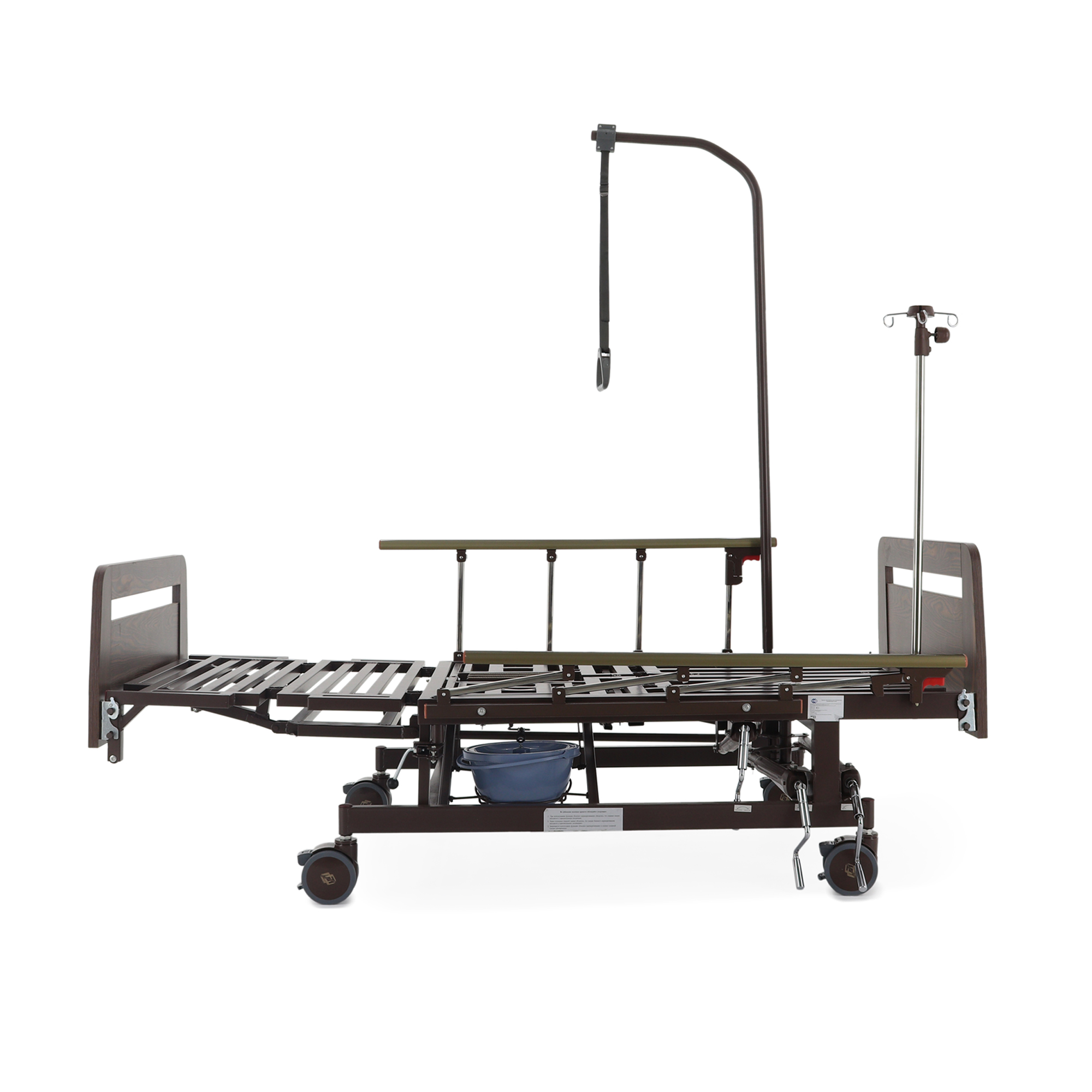 Медицинская функциональная кровать Med-Mos E-45A — это механическая модель с боковым переворачиванием, туалетным устройством и функцией «кардиокресло». Поставляется с ППУ матрасом в комплекте. Предназначена для ухода за пациентами в стационарах или дома. Отделка из ЛДСП венге сочетает практичность и эстетичный внешний вид, а механические приводы обеспечивают надежность и простоту эксплуатации.