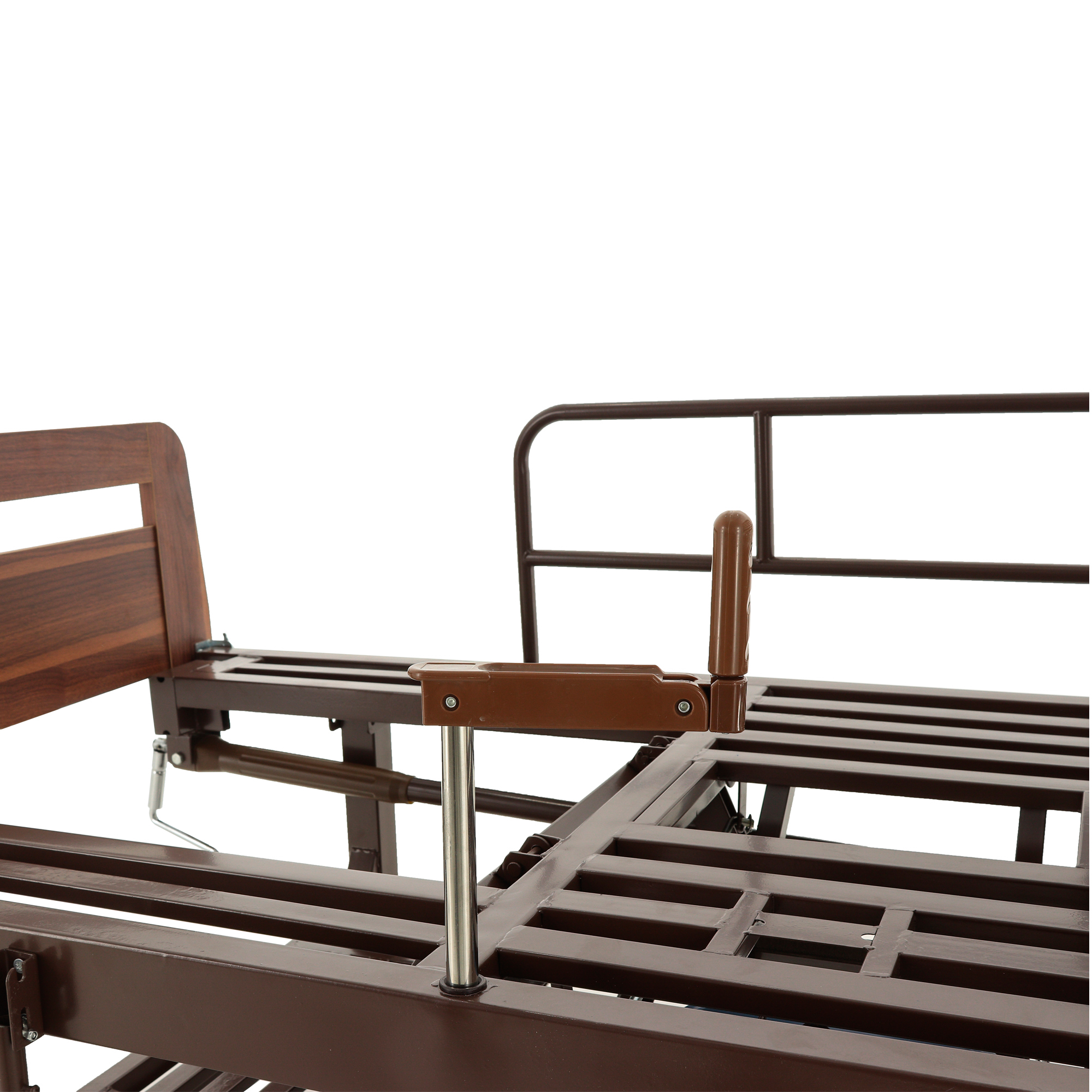 - Боковые ограждения откидные, выполнены из стальной трубы с эпоксидным покрытием, обеспечивают безопасность пациента.