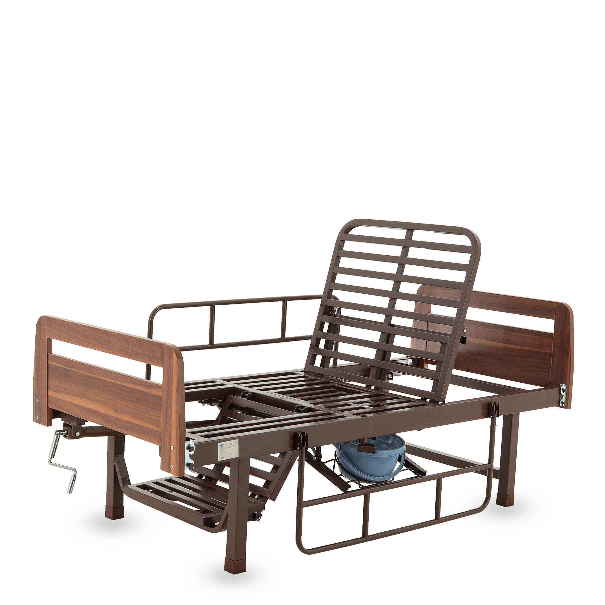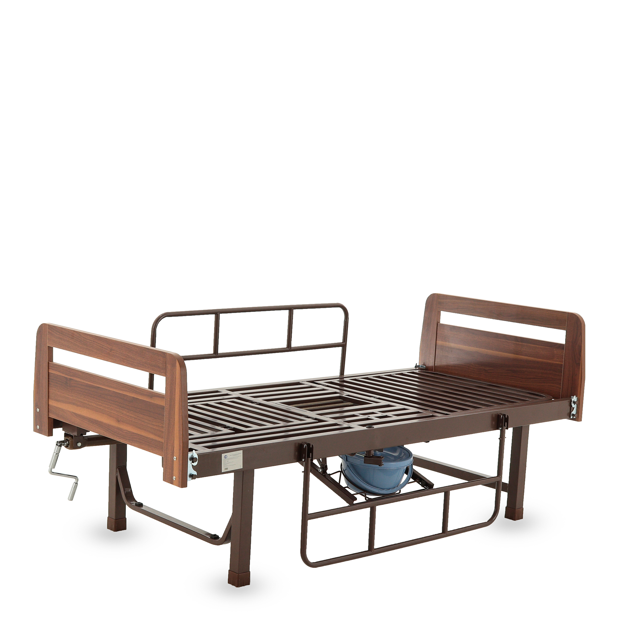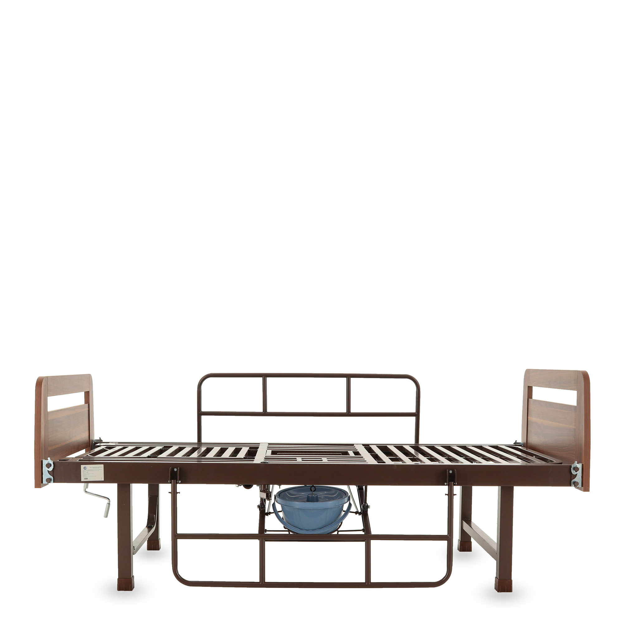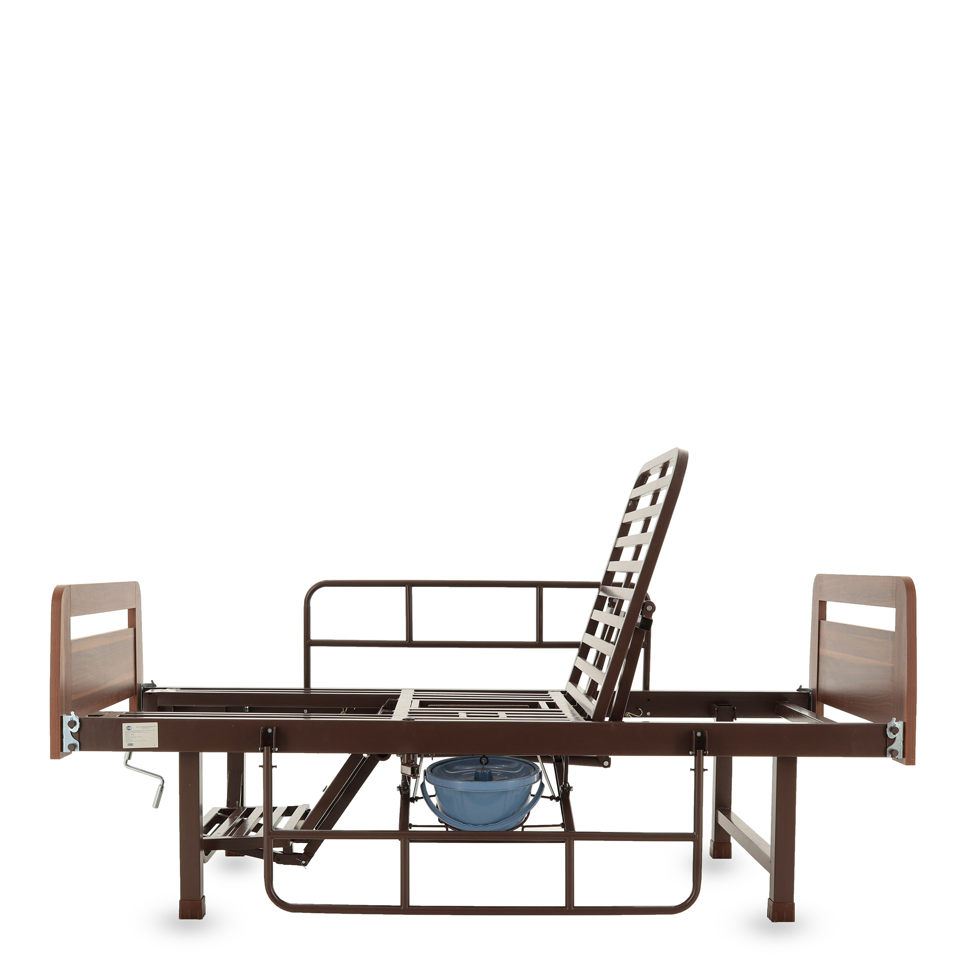 - Рукоять вращения туалетного устройства: съемная с пластиковой складной ручкой, позволяющая пациенту самостоятельно пользоваться туалетом, не покидая кровати.