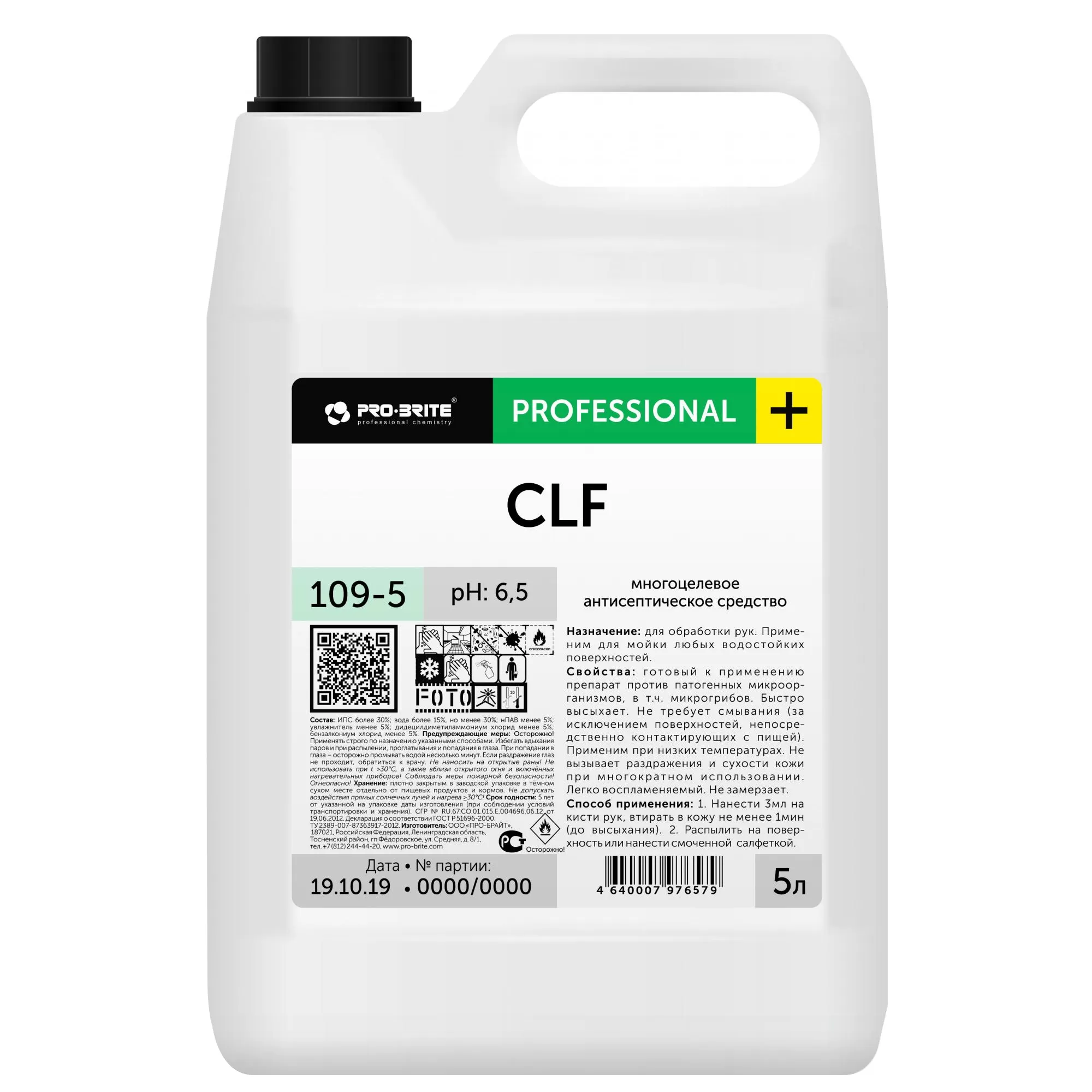 Готовый к использованию кожный антисептик 109-5 CLF для обработки рук, обработки различных водостойких поверхностей и мытья полов в различных сферах деятельности: пищевые производства и пункты общественного питания, мед. и образовательные учреждения и проч.