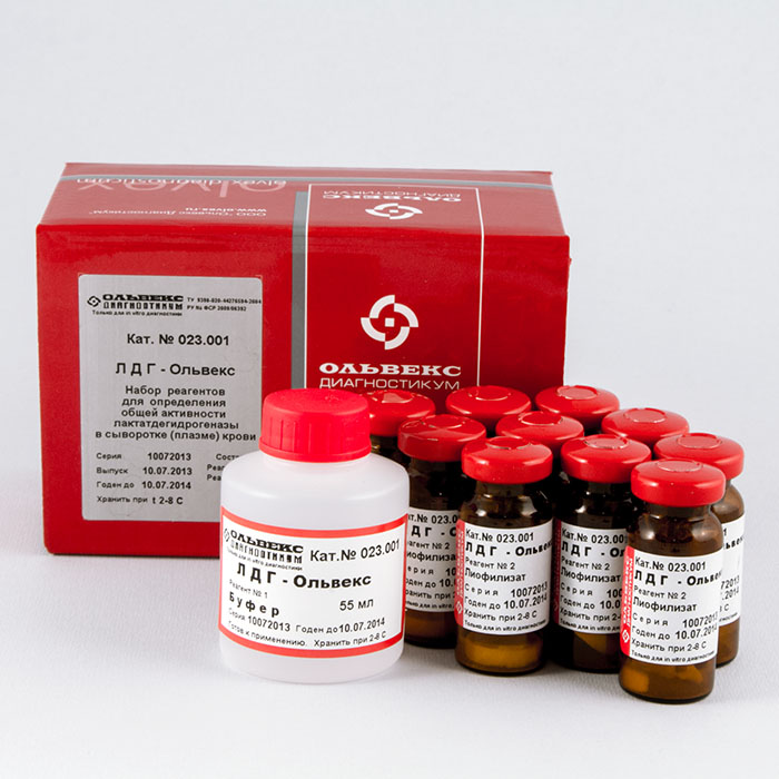 Набор реагентов «ЛДГ-ОЛЬВЕКС» предназначен для количественного определения общей активности лактатдегидрогеназы (ЛДГ) в сыворотке или плазме крови человека кинетическим методом.