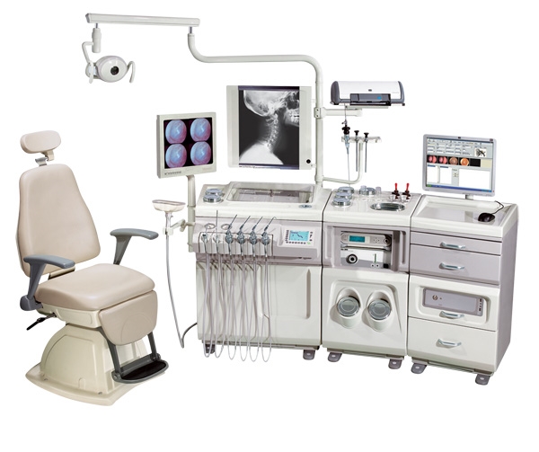 - Жидкокристаллическая панель позволяет контролировать и управлять: электропитанием, источником света, подогревом инструментов, зеркал и эндоскопов, подогревом воды, негатоскопом, положением кресла пациента, отсасывателем, видеокамерой, распылителями лекарственных средств.