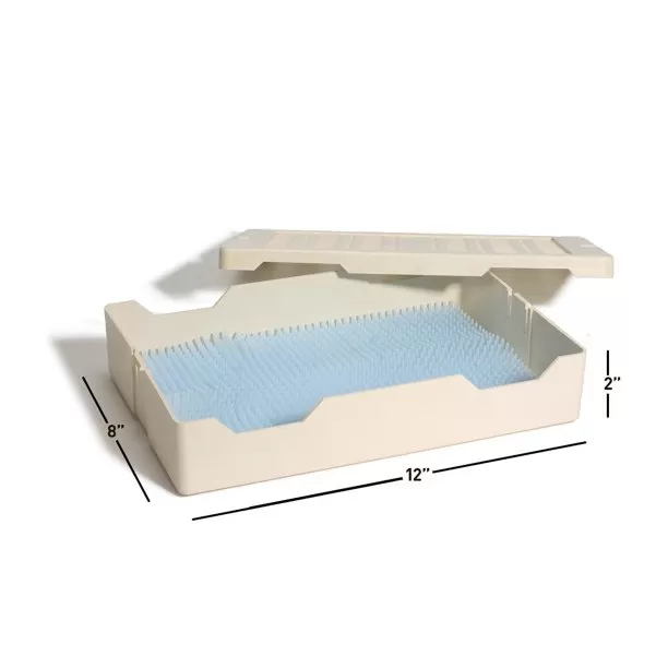 Уникальная конструкция лотков была протестирована на предмет оптимального проникновения и распределения пероксида водорода и плазмы вокруг всех инструментов при загрузке в стерилизатор, защиты медицинских приборов во время процесса стерилизации/транспортировки/хранения, химического состава и пористости.