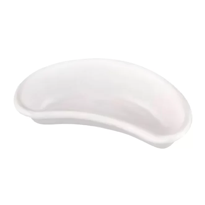 - Лоток почкообразный универсален в эксплуатации. Он хорошо приспособлен для сбора различных биожидкостей (крови, мочи, плевральной жидкости, гноя и пр.). В почкообразных лотках размещают использованные мединструмент, перевязочный материал, отходы после процедур и т.д. Кроме того, в них проводят различные манипуляции (катетеризации, подготовку перевязки, пункции), некоторые санитарные обработки (например, промывку трубок дренажа).