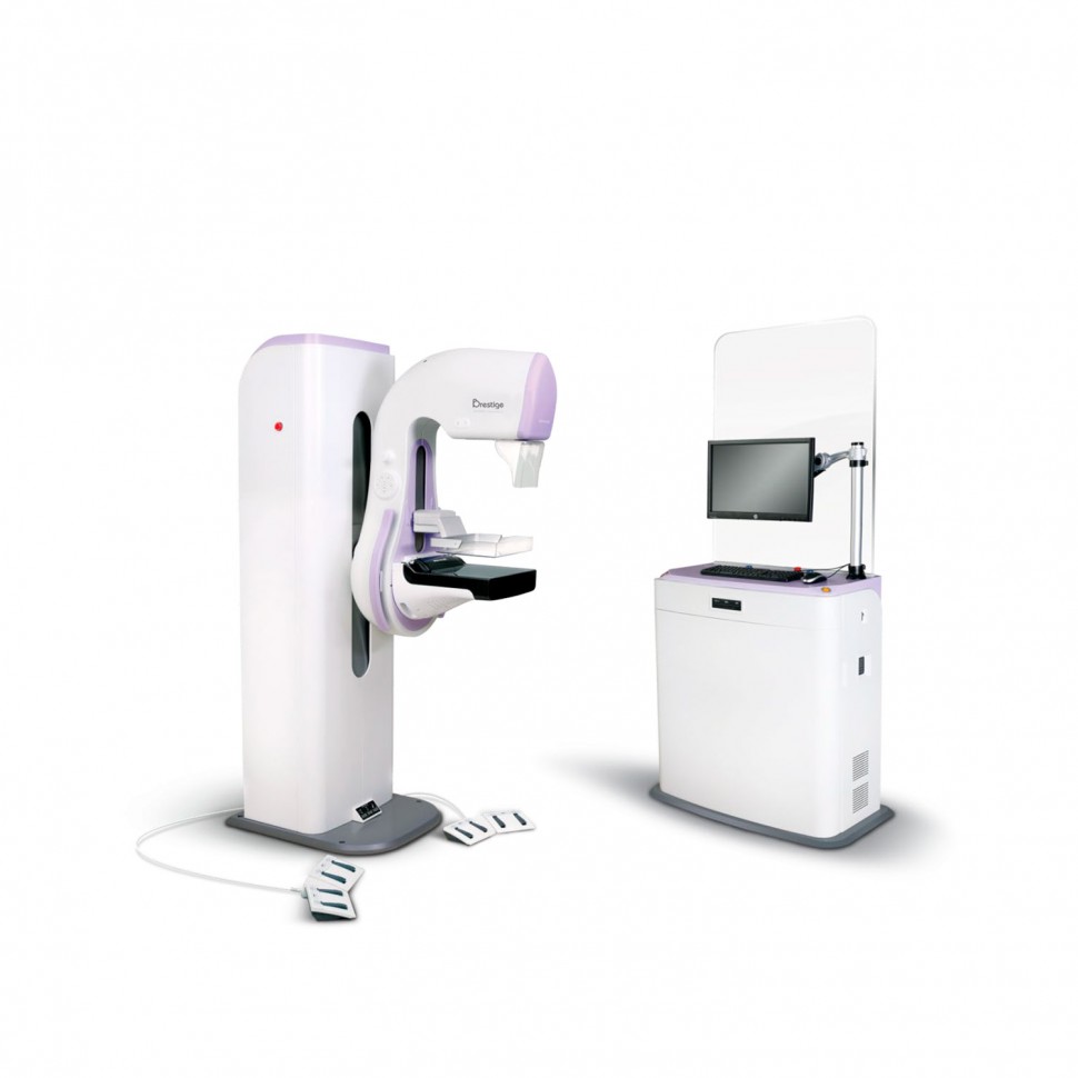 Рентгеновский маммограф Brestige разработан с учетом передовых технологий. В нем сочетаются мощный генератор, самый современный цифровой приемник и эргономичный дизайн. Возможности цифровой системы Brestige помогают работать с пациентами с любым размером груди, а умная система компрессии и угол поворота снимочного штатива до 180 градусов позволит исследовать каждого пациента.