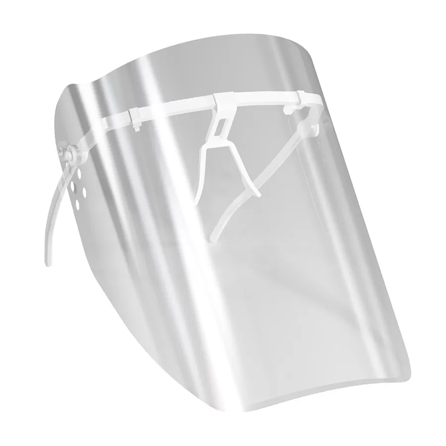 Эффективная защита лица от прямого попадания брызг и твердых частиц. Состоит из оправы, опоры белого цвета и прозрачной пленки, выполненной в виде щитка. Оправа и опора изготовлены из ударопрочного полистирола, пленка – из полиэтилентерефталата.