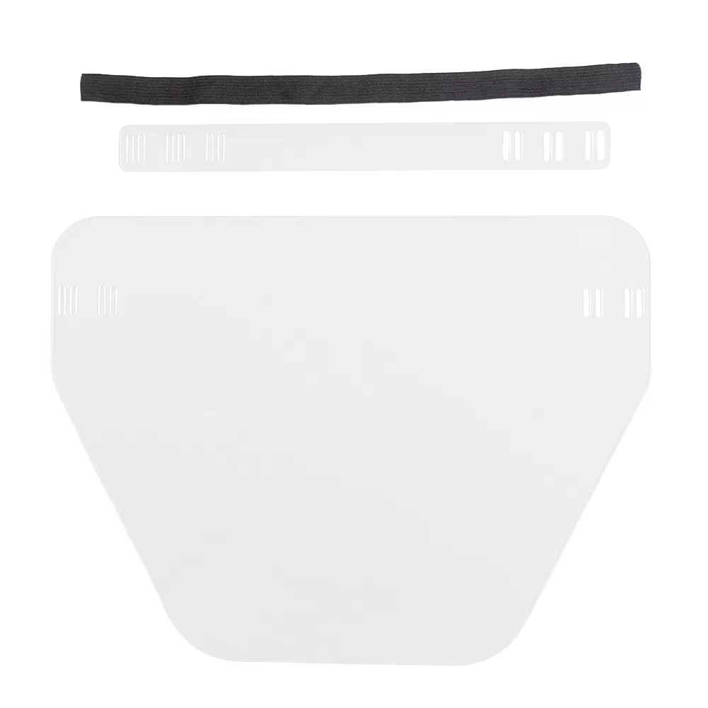 Основная часть изделия — обзорный прозрачный бесцветный щиток, изготовленный из полимерной пленки, не искажает видимые предметы, не отражает свет, не желтеет.