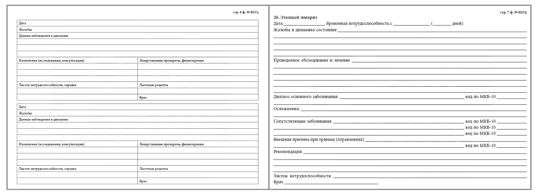 Медицинская карта амбулаторного больного форма 025 у это основной документ пациента амбулаторного учреждения, предназначенный для внутреннего использования. Карта содержит все важные сведения о больном, необходимые для осуществления лечебного процесса в полном объеме. Документ оформляется в регистратуре при первичном обращении пациента. Здесь оформляется титульный лист.