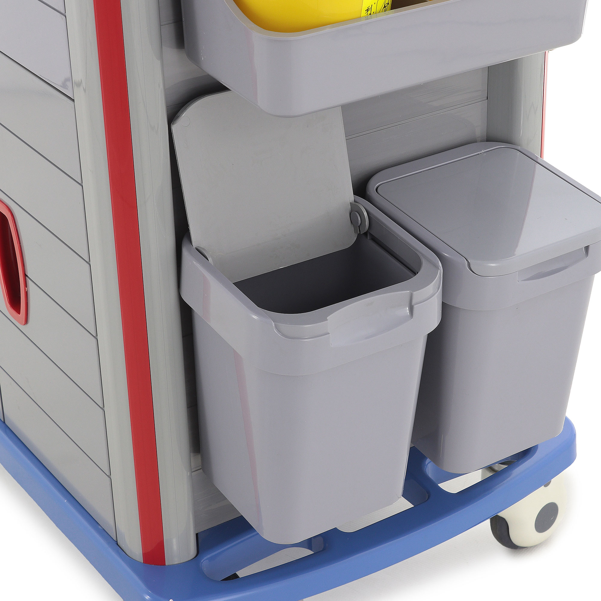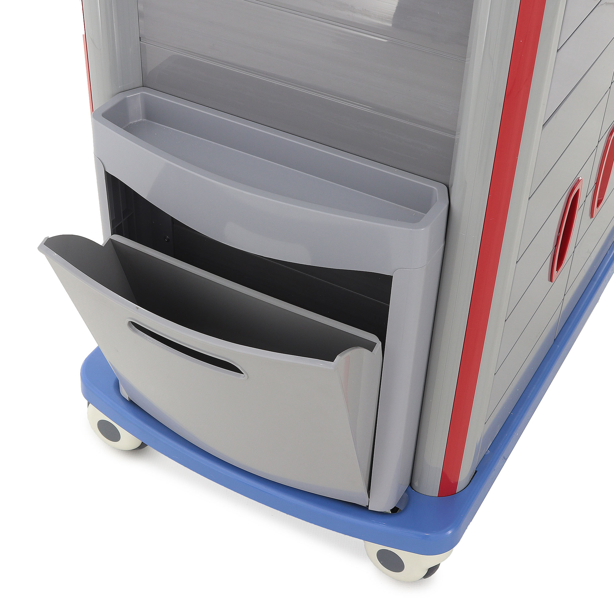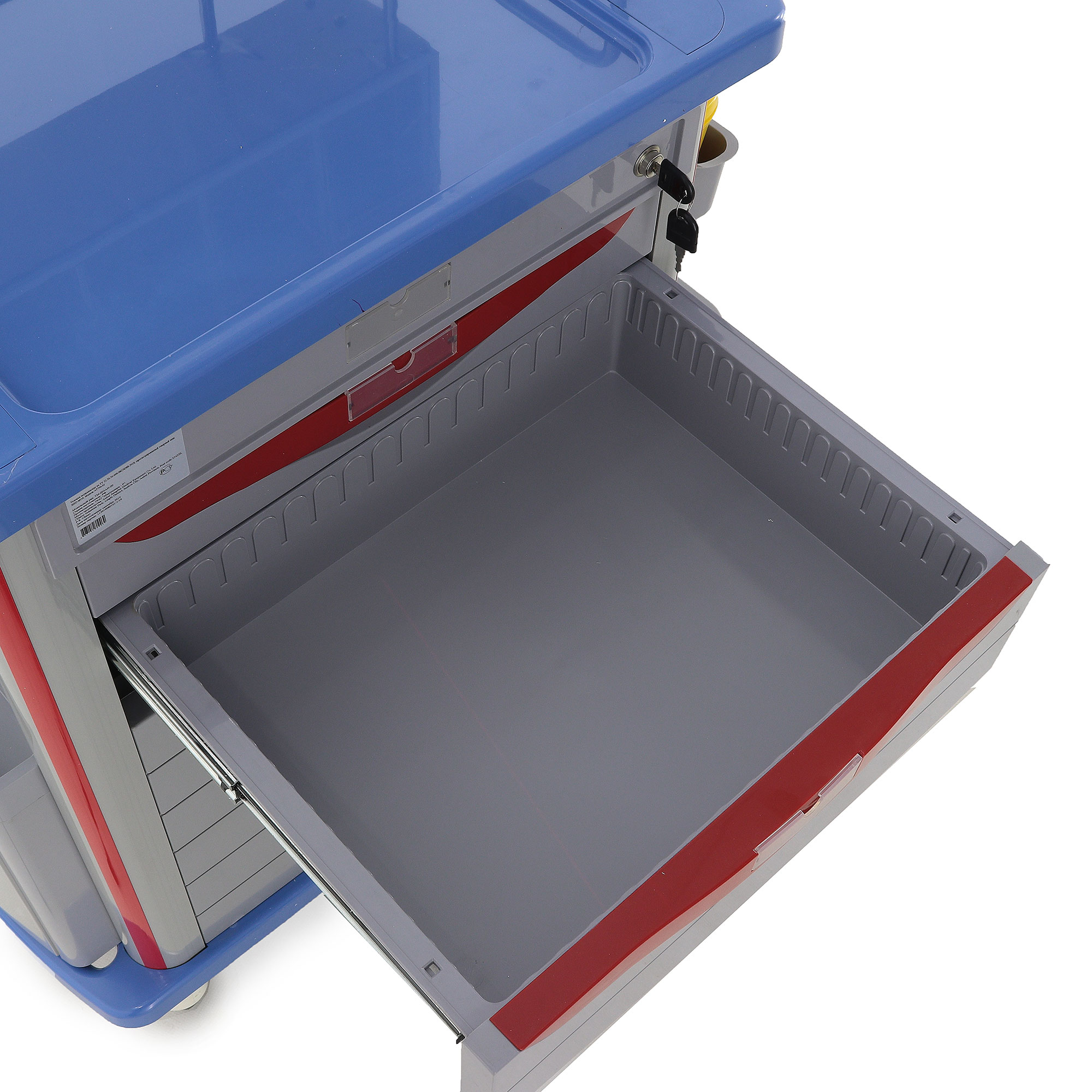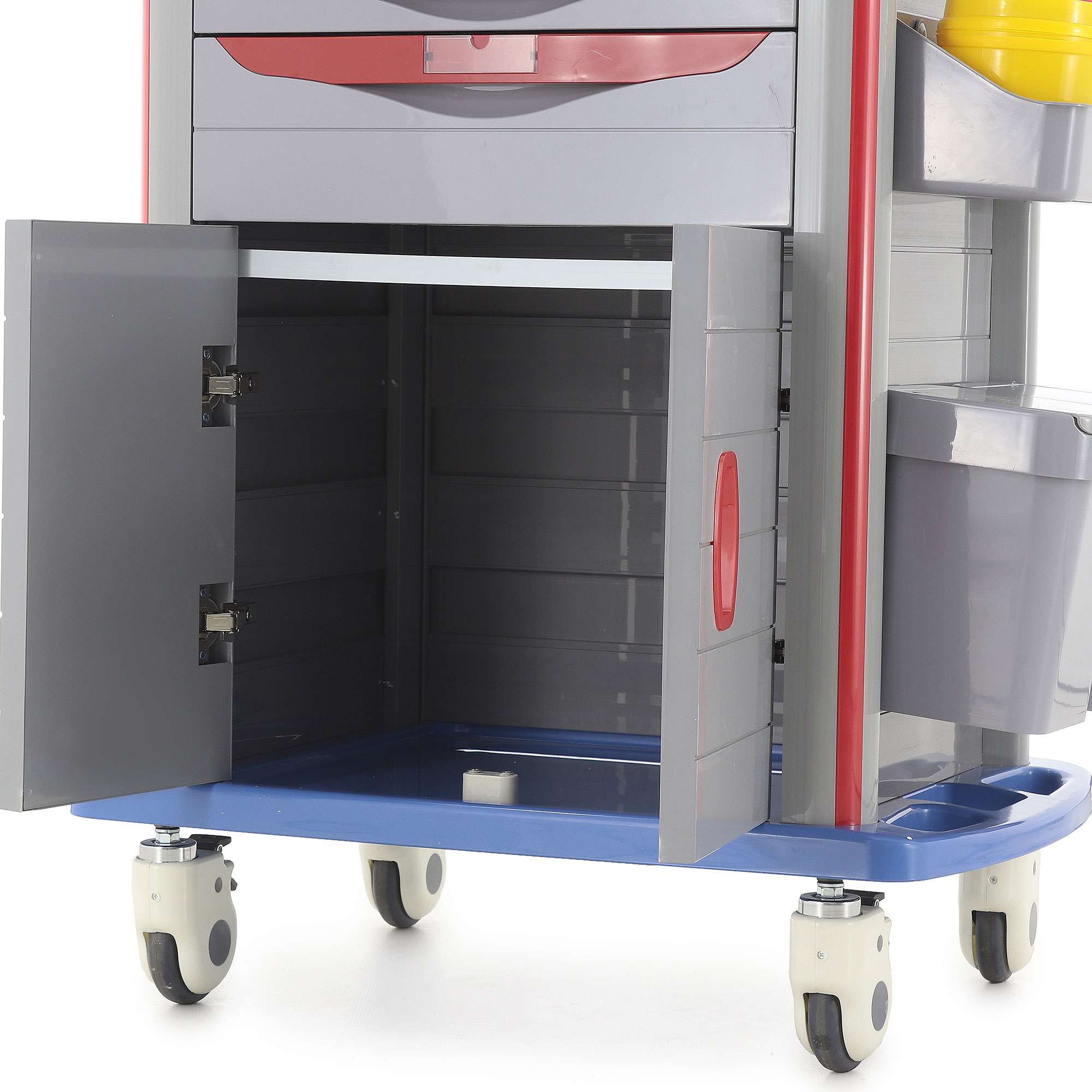 - Функциональность: Два ящика с перегородками, анестезиологическая стойка с пятью контейнерами и шесть навесных ёмкостей обеспечивают организованное хранение.