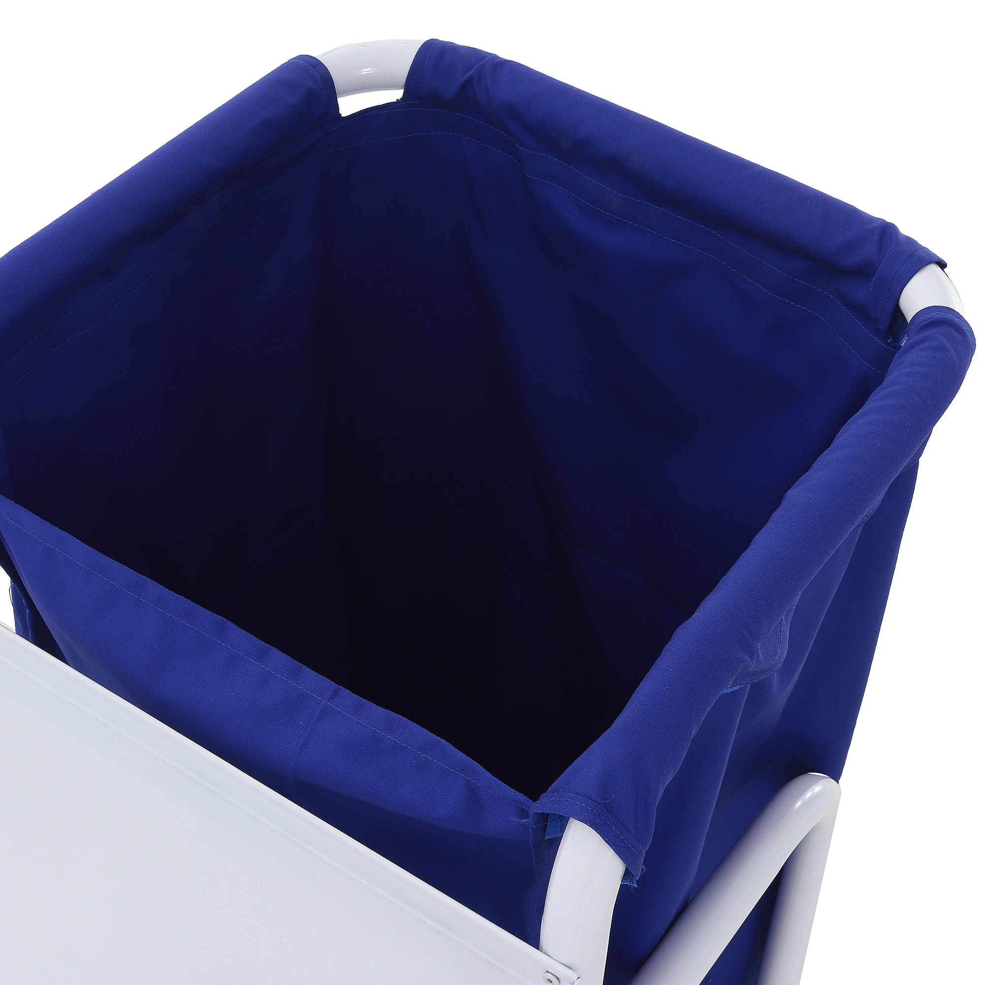 - Функциональная организация: Выдвижной ящик с ковриком и полка с отбортовкой для хранения инструментов, а тканевый мешок (120 л) для белья.