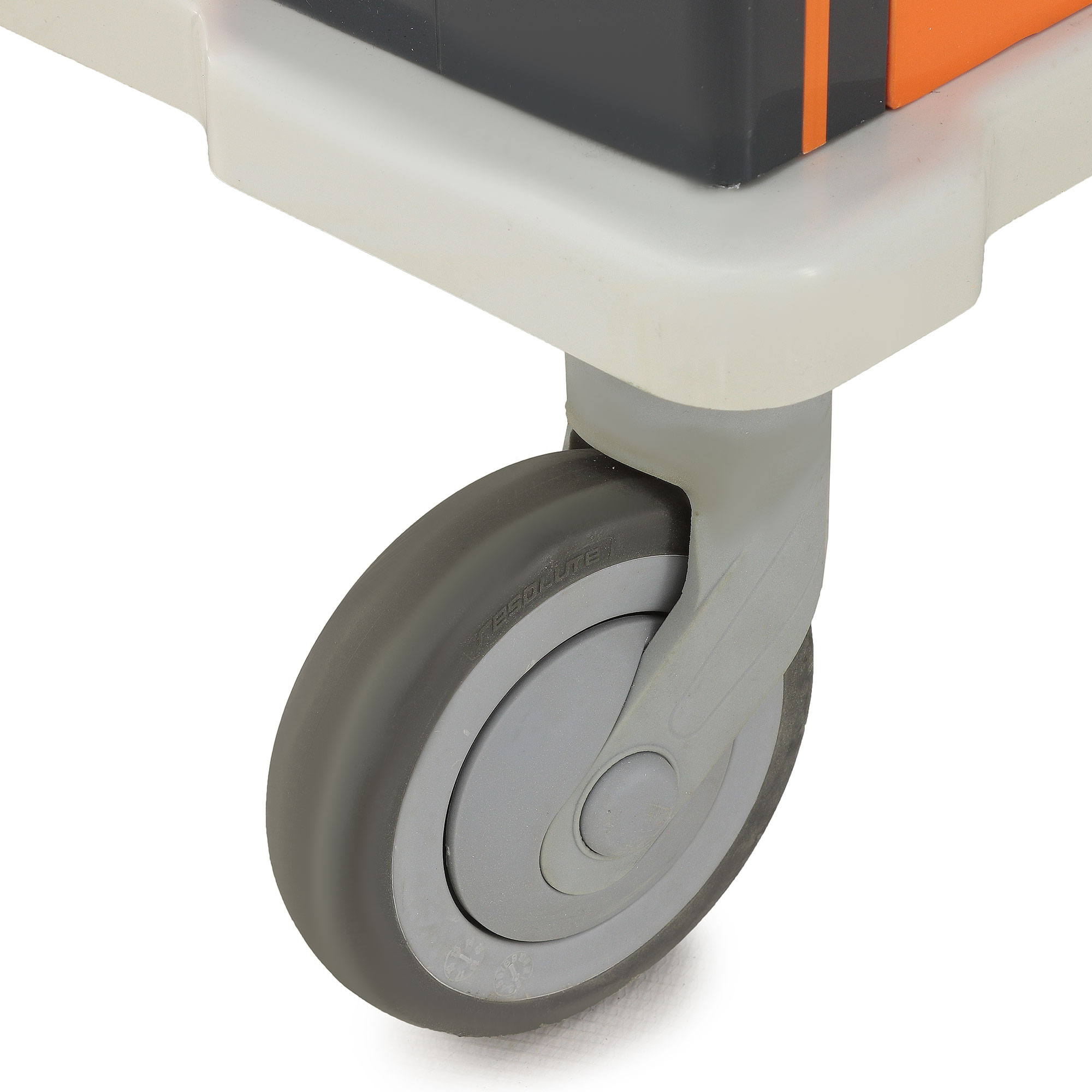 - Мобильность: Четыре колеса _ 125 мм с полиуретановыми шинами и тормозами на двух передних колёсах для лёгкого перемещения.
