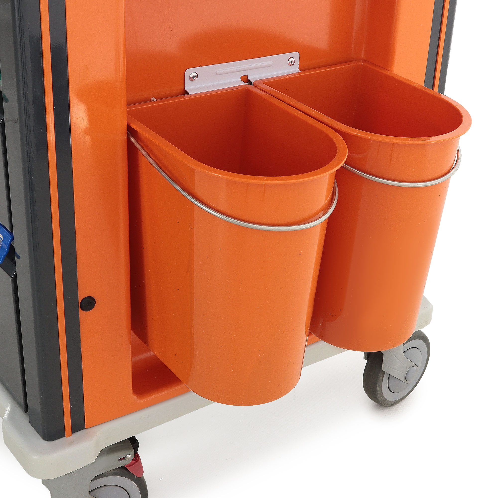 - Ведра: 2 шт., пластик, оранжевые, с крышкой, 175x175x230 мм, на правой стенке внизу