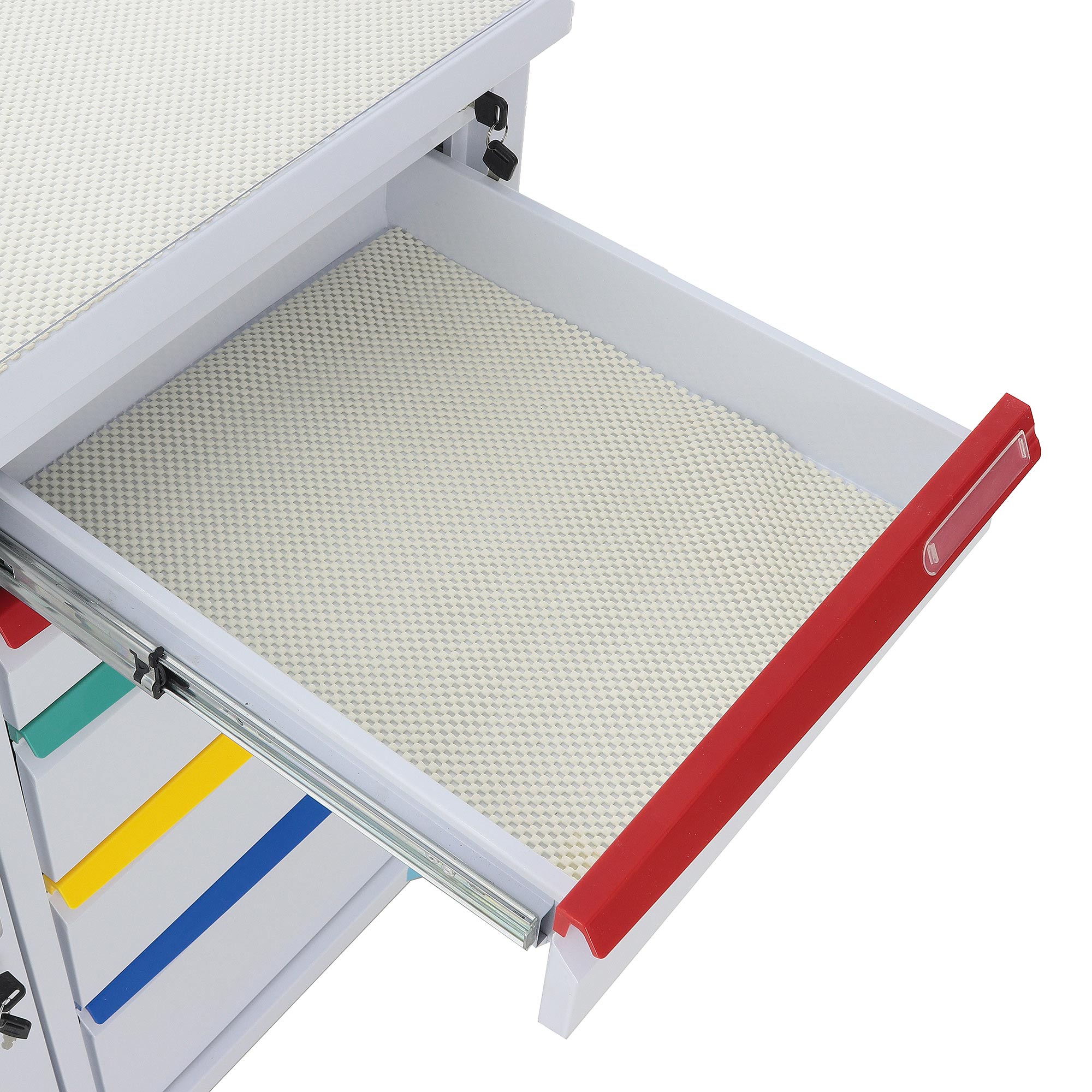 - Удобство: Доводчики на ящиках, разноцветные ручки и выдвижной столик (317x34x375 мм) упрощают работу персонала.