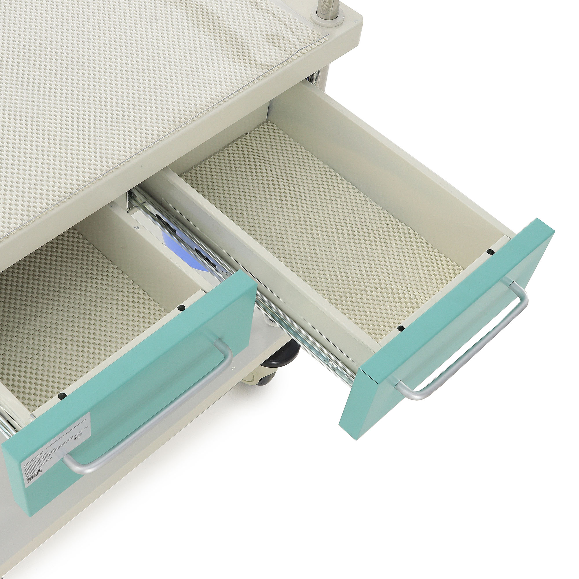 - Гигиеничность: Поверхности устойчивы к дезинфицирующим средствам, а коврики в ящиках и на столешнице предотвращают скольжение предметов.