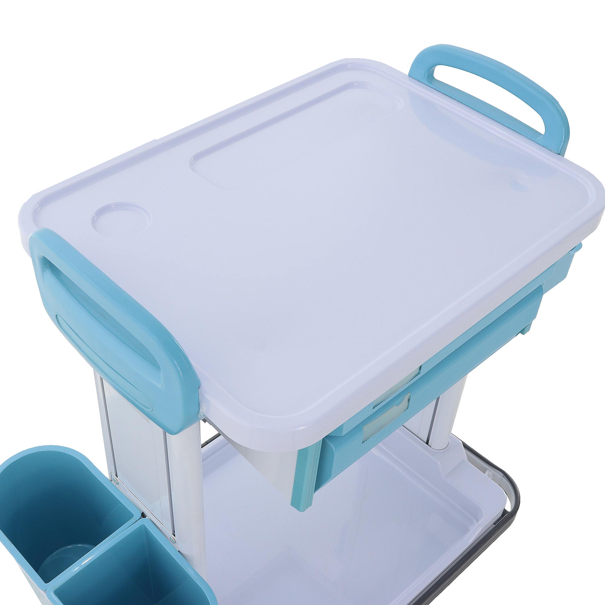 Медицинская тележка СТ108 TM-016AH-00 разработана для выполнения терапевтических, процедурных и многофункциональных задач в медицинских учреждениях. Она оснащена двумя выдвижными ящиками с четырьмя съёмными перегородками, тремя навесными ёмкостями (два ведра без крышек и один лоток), двумя транспортировочными ручками и круговым защитным бампером из ПВХ. Каркас выполнен из гнутого сварного стального листа с ударопрочной эпоксидной эмалью и пластика, а стойки из алюминиевого профиля обеспечивают прочность и лёгкость.