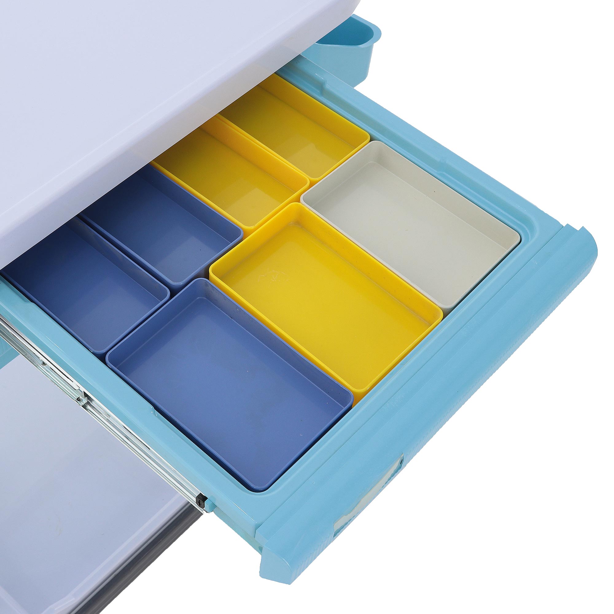- Функциональность: Два ящика с перегородками, два навесных ведра и лоток обеспечивают удобное хранение инструментов и расходных материалов.